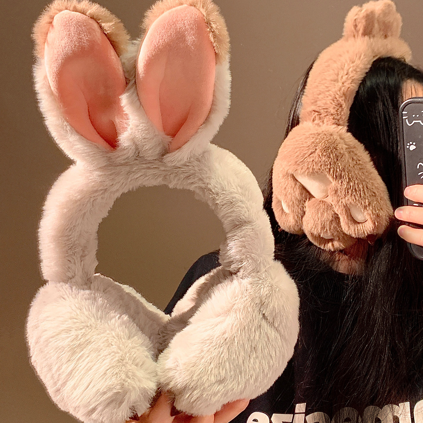 可爱真獭兔毛耳罩女冬季百搭保暖毛绒耳包骑车防风耳暖耳捂可伸缩
