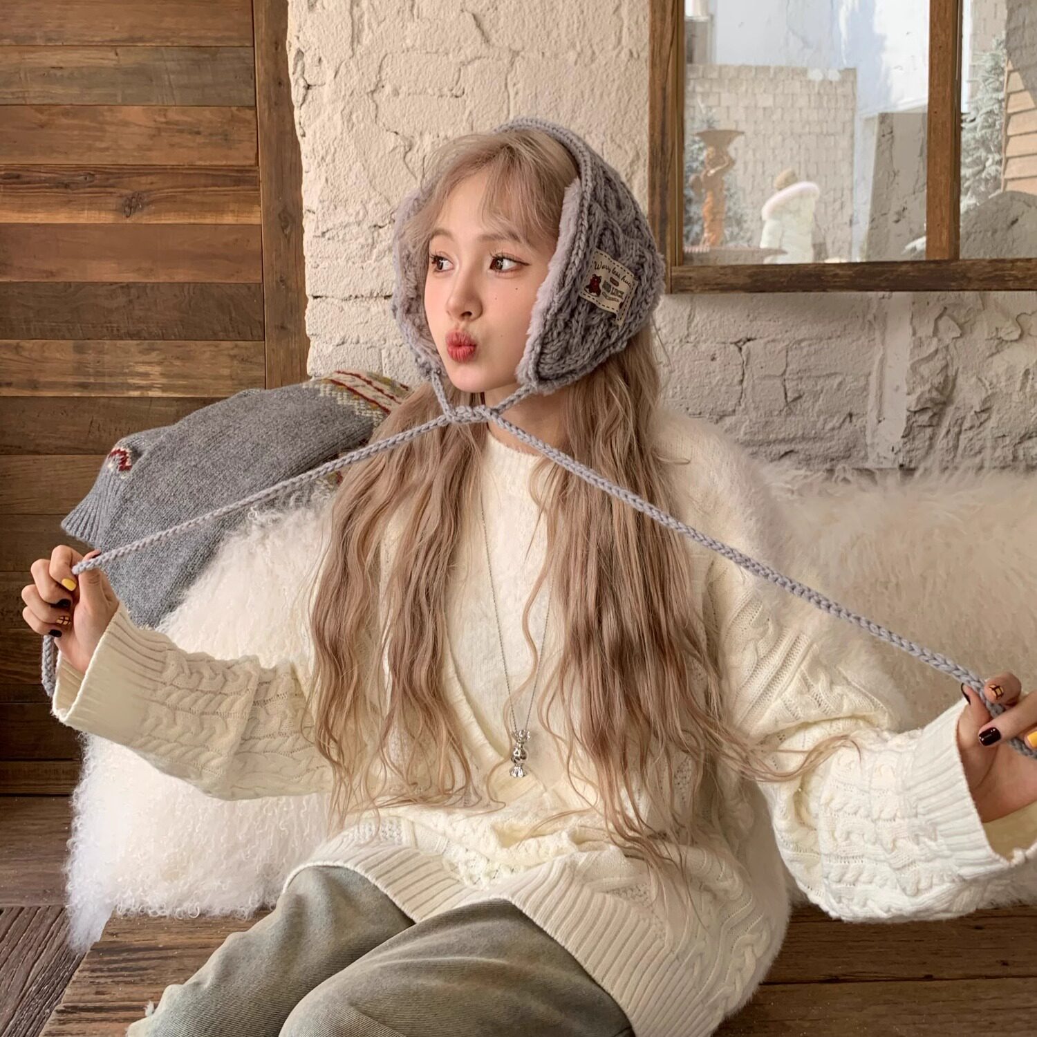 淘宝hucares认准原版「奶奶织的耳罩」纯手工编织耳罩耳暖冬季绑带