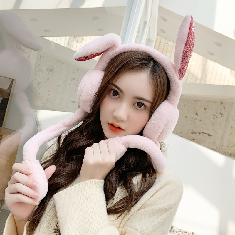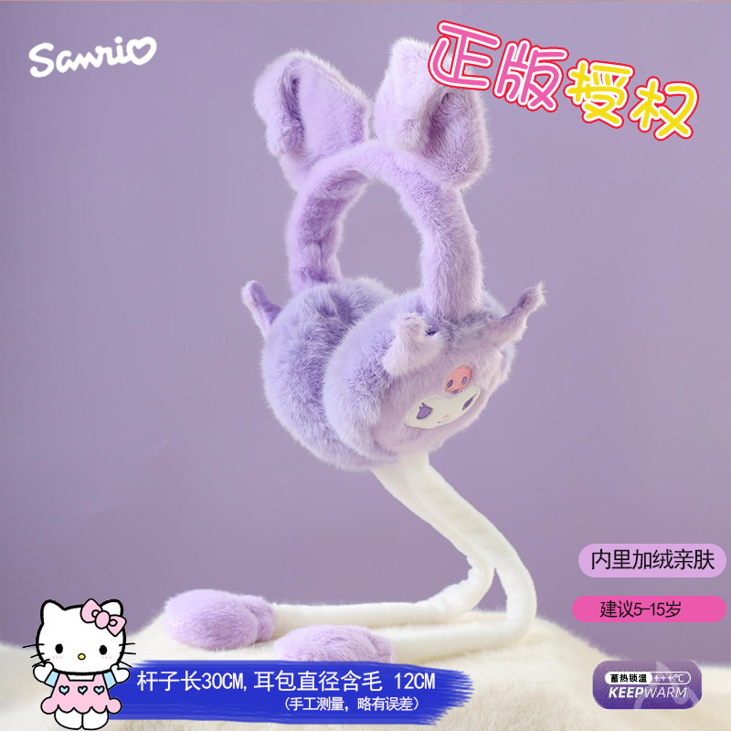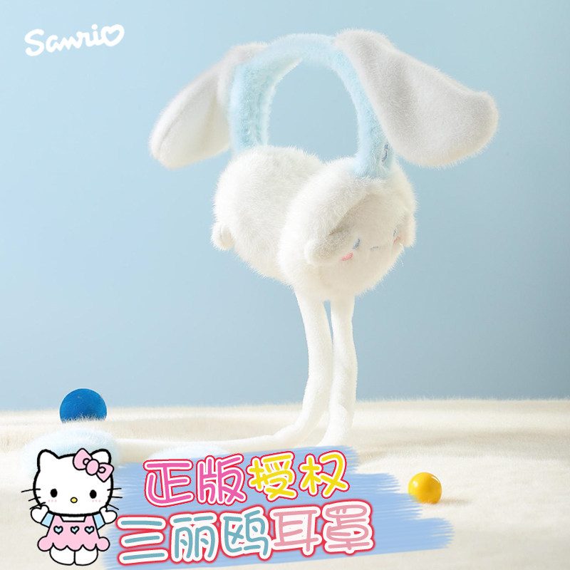 天猫正版三丽鸥兔耳朵会动保暖耳罩女学生儿童可爱耳套冬季耳包护耳朵