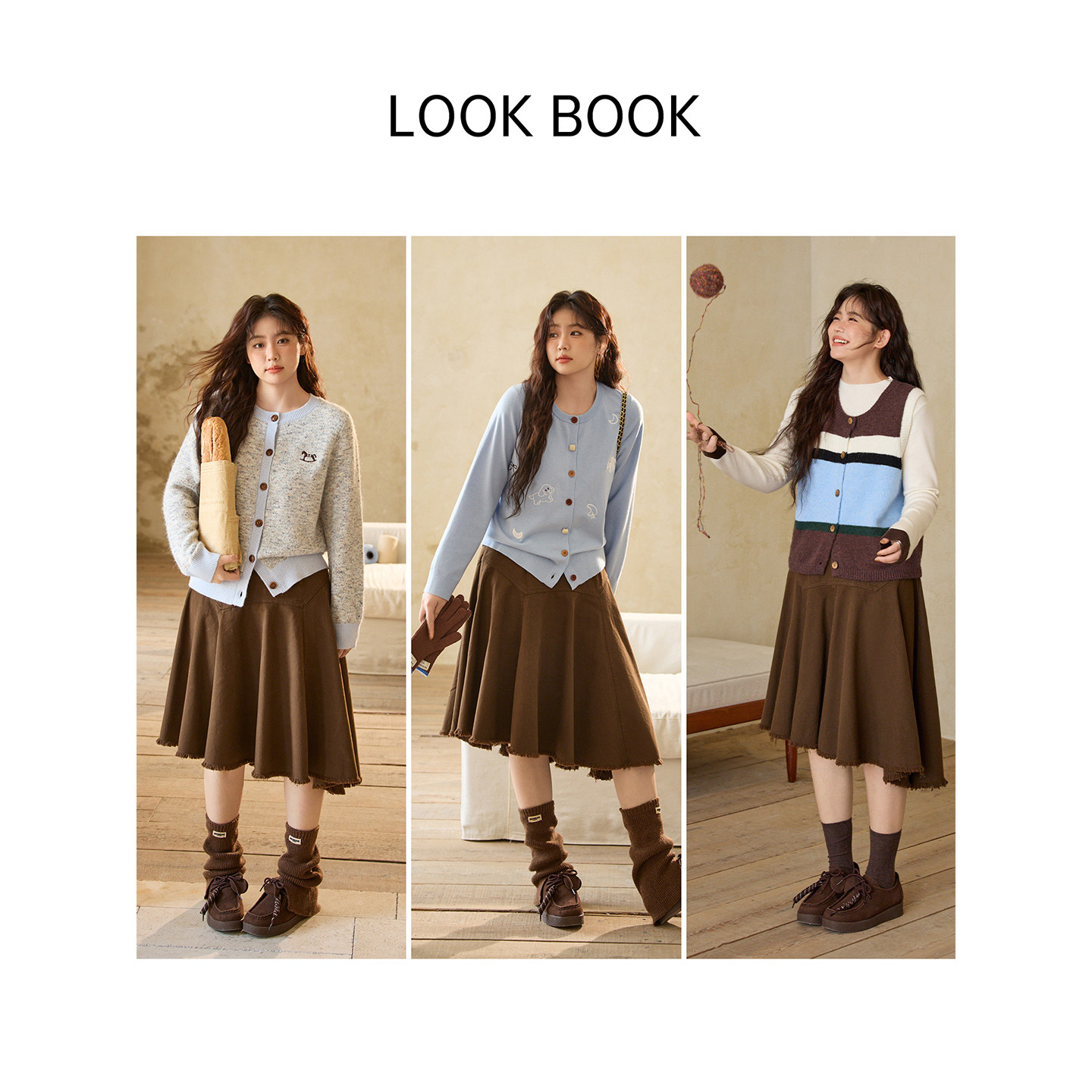 淘韩系学院风休闲灰色针织马甲+长袖衬衫+高腰格子半身裙女三件套装