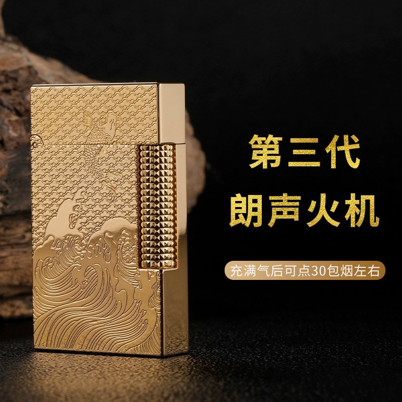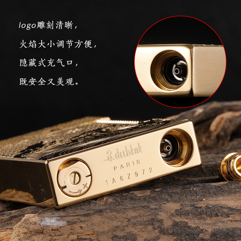 天猫法国都柏特朗声充气打火机纯黄铜钢音砂轮送男士高端鲤鱼跃龙门