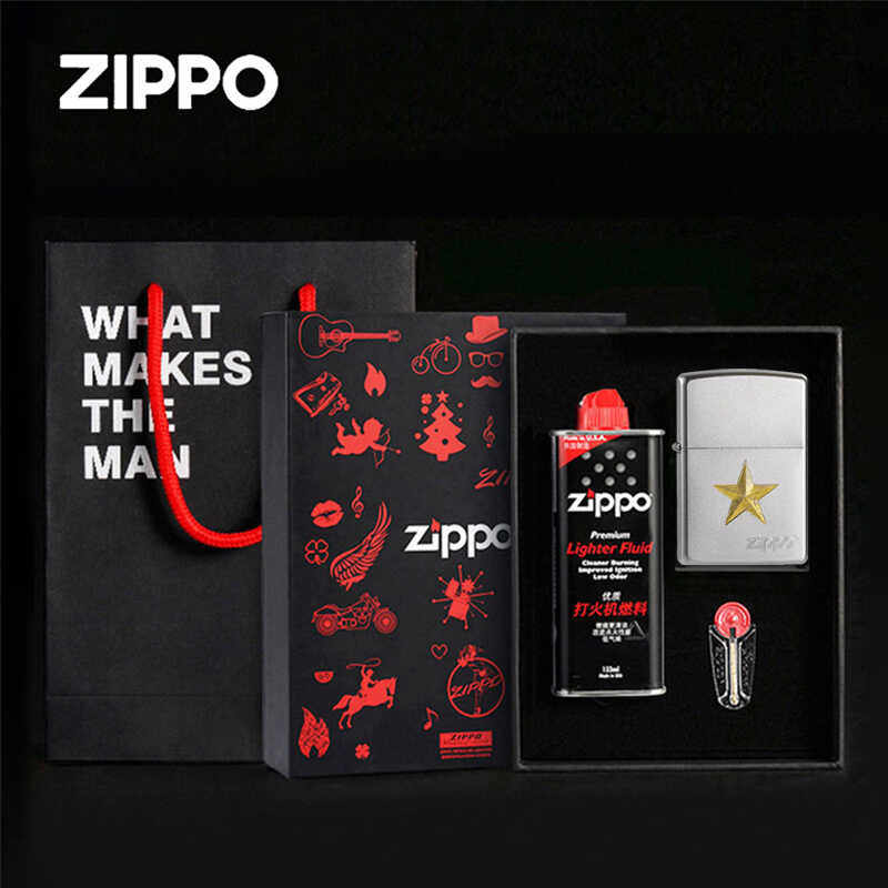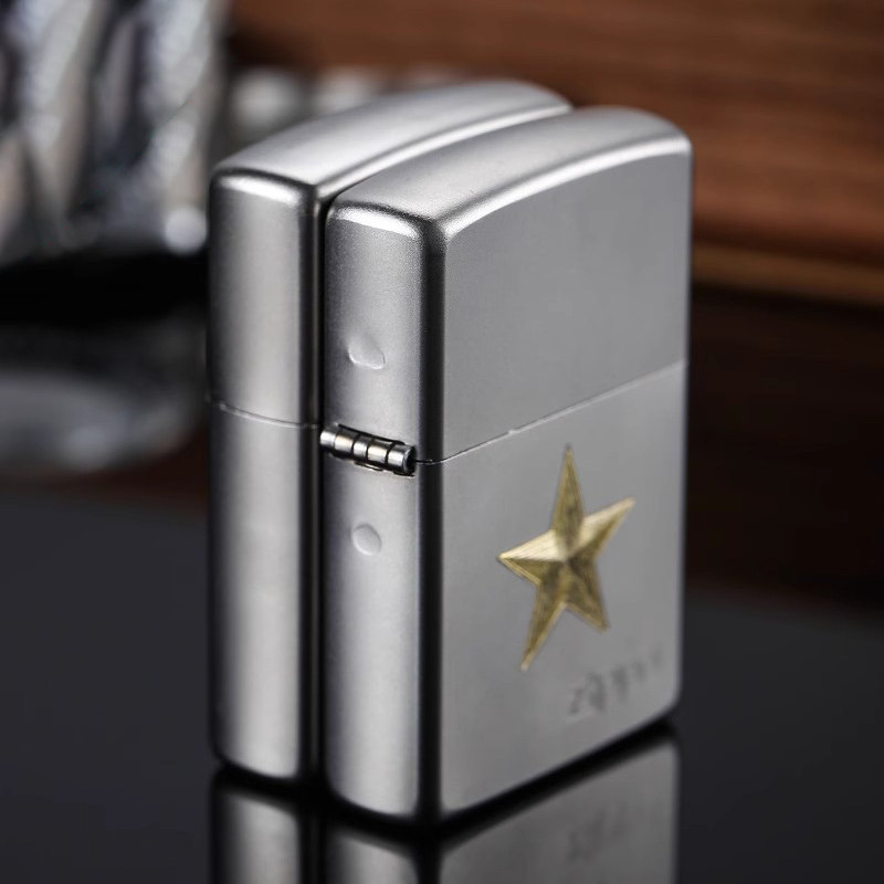 淘宝Zippo经典打火机磨砂雕刻五角星星星之火煤油八一退伍收藏送礼