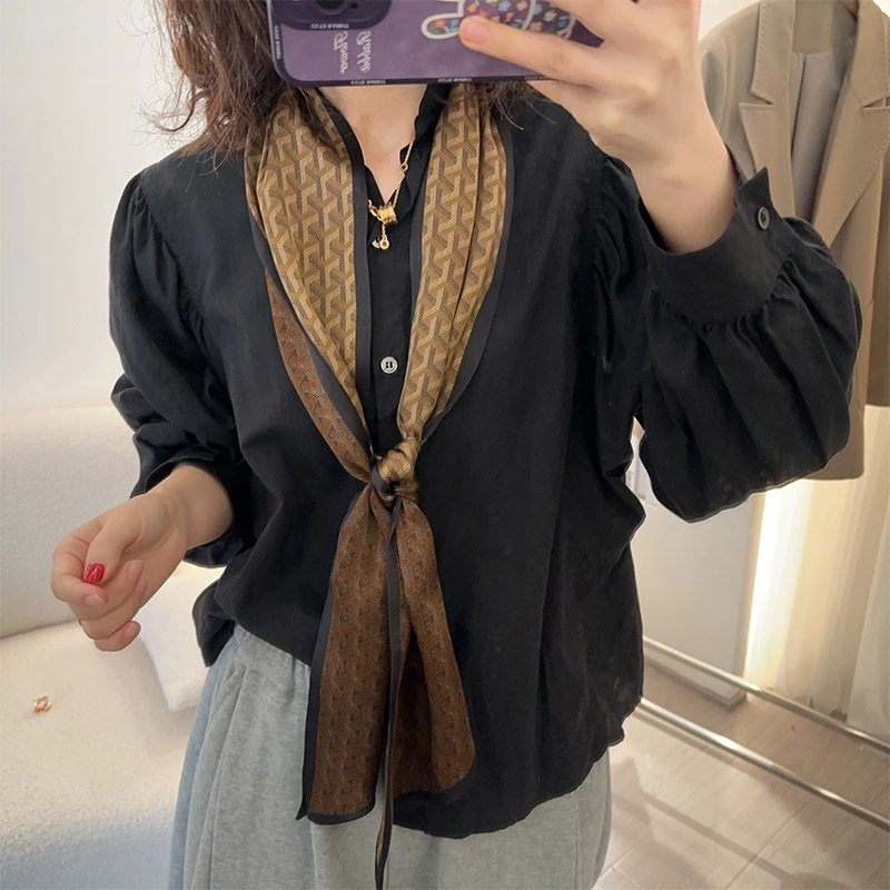 优雅气质风!斜纹真丝丝巾女法式黑白藏书章多功能桑蚕丝围巾披肩