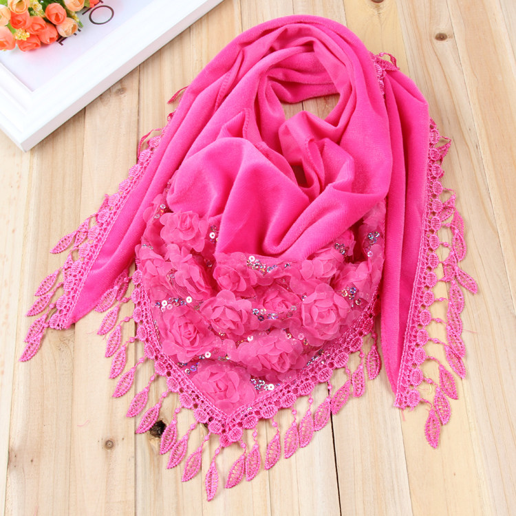 淘宝冬季围巾女士成人毛绒三角巾包头巾洋气刺绣丝巾披肩薄款纱巾领巾