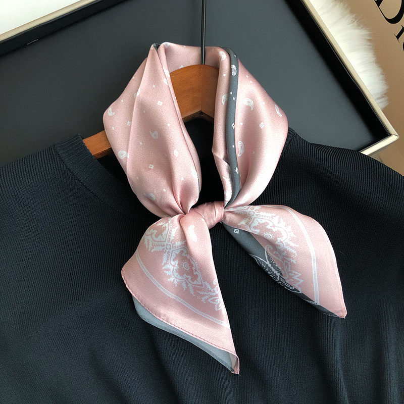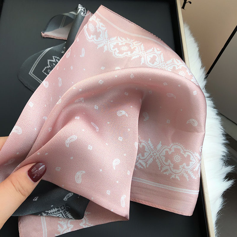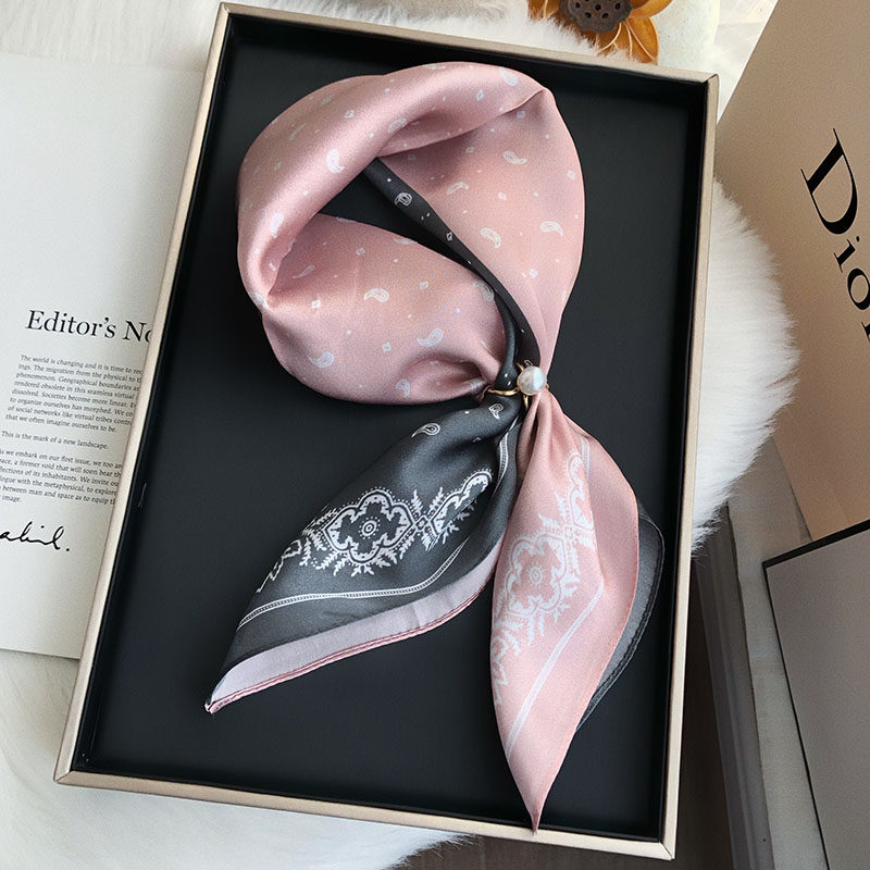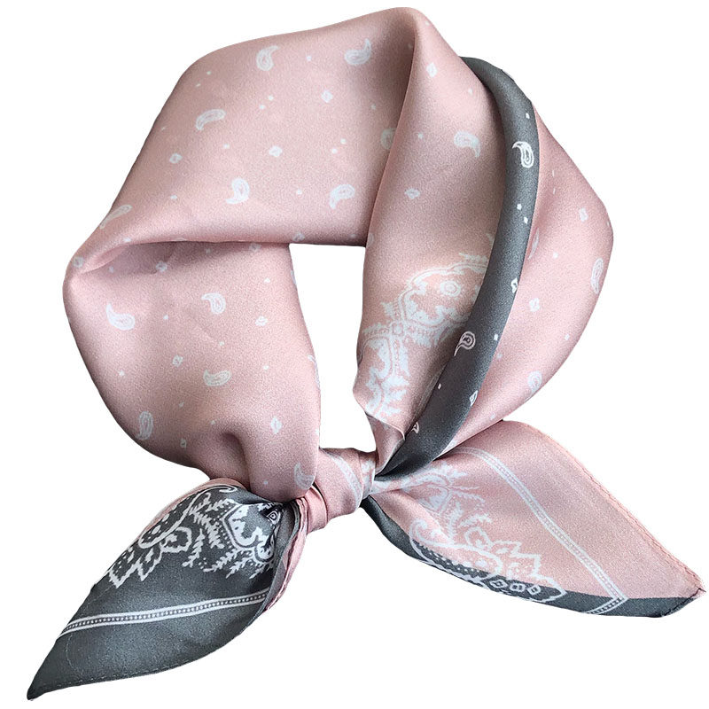 淘宝粉灰色真丝小方巾2025新款丝巾女士腰果花百搭高档桑蚕丝装饰领巾