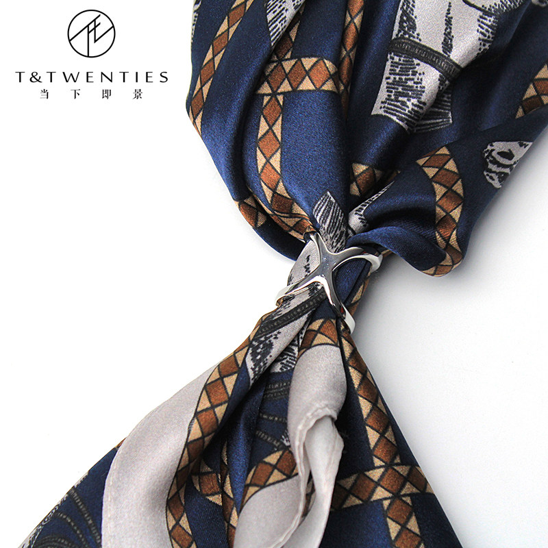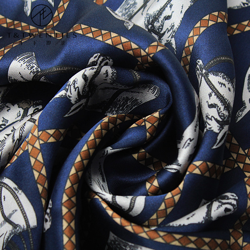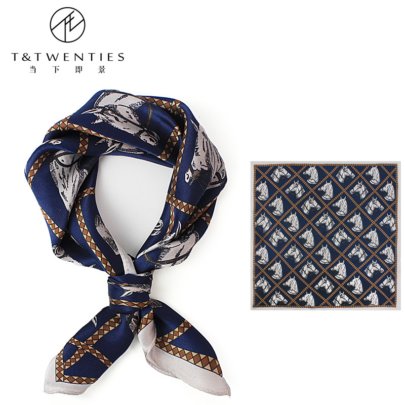 淘优雅气质风!斜纹真丝丝巾女法式黑白藏书章多功能桑蚕丝围巾披肩