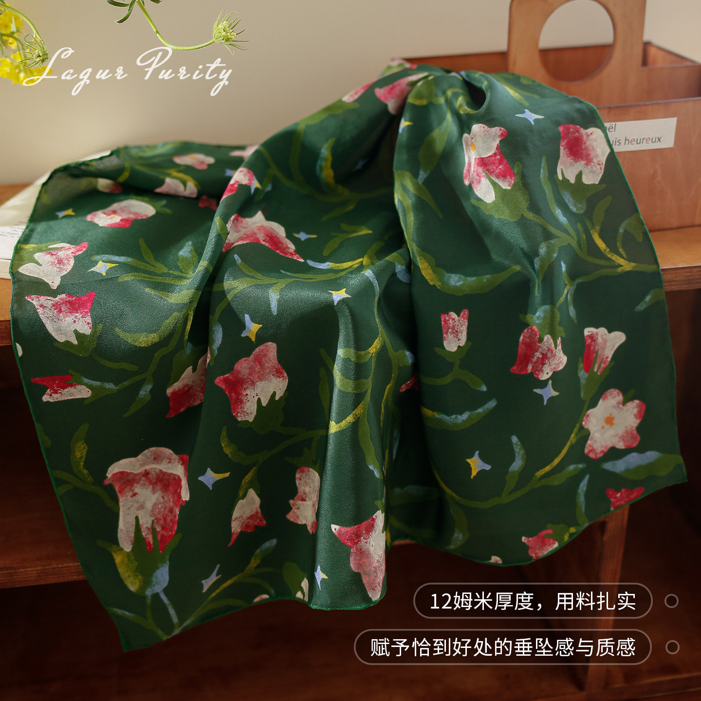淘宝高贵祖母绿系~手工精卷桑蚕丝丝巾2025新款春秋显白真丝方巾女士