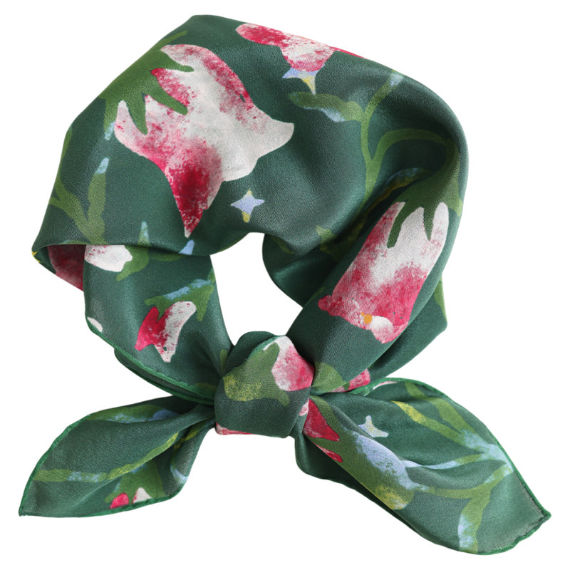 红色真丝丝巾小方巾女100%桑蚕丝高级感送妈妈花朵围巾春夏季百搭