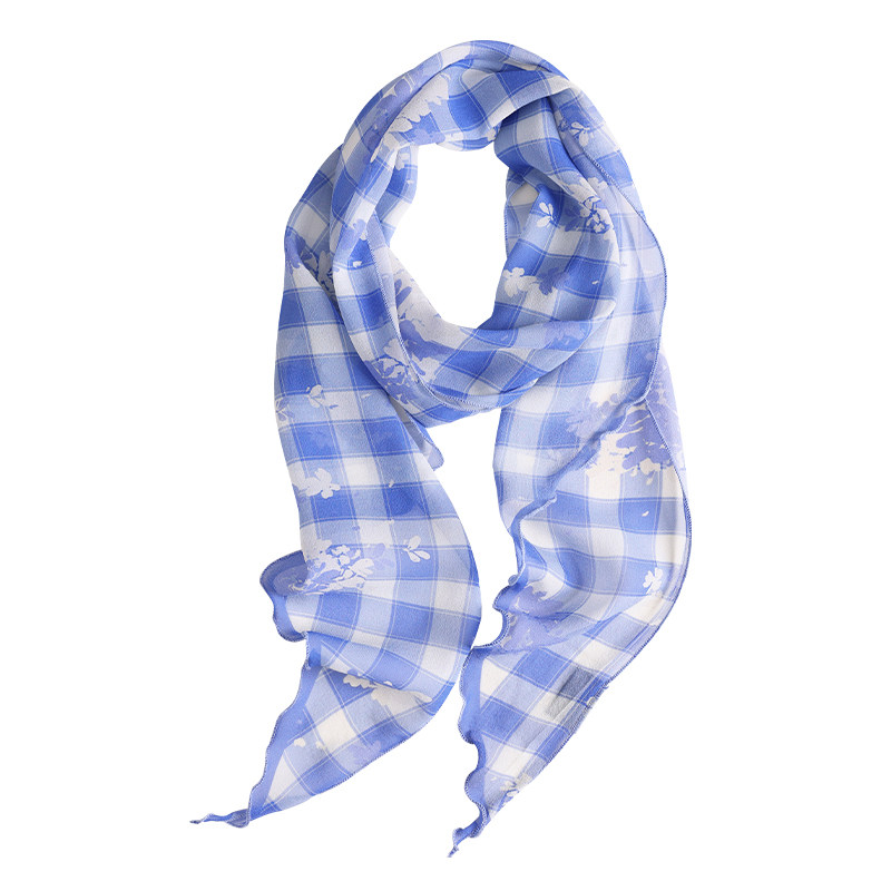 淘宝「文艺蓝白格」100%桑蚕丝丝巾长条头巾绑包薄款腰带发饰2025新款