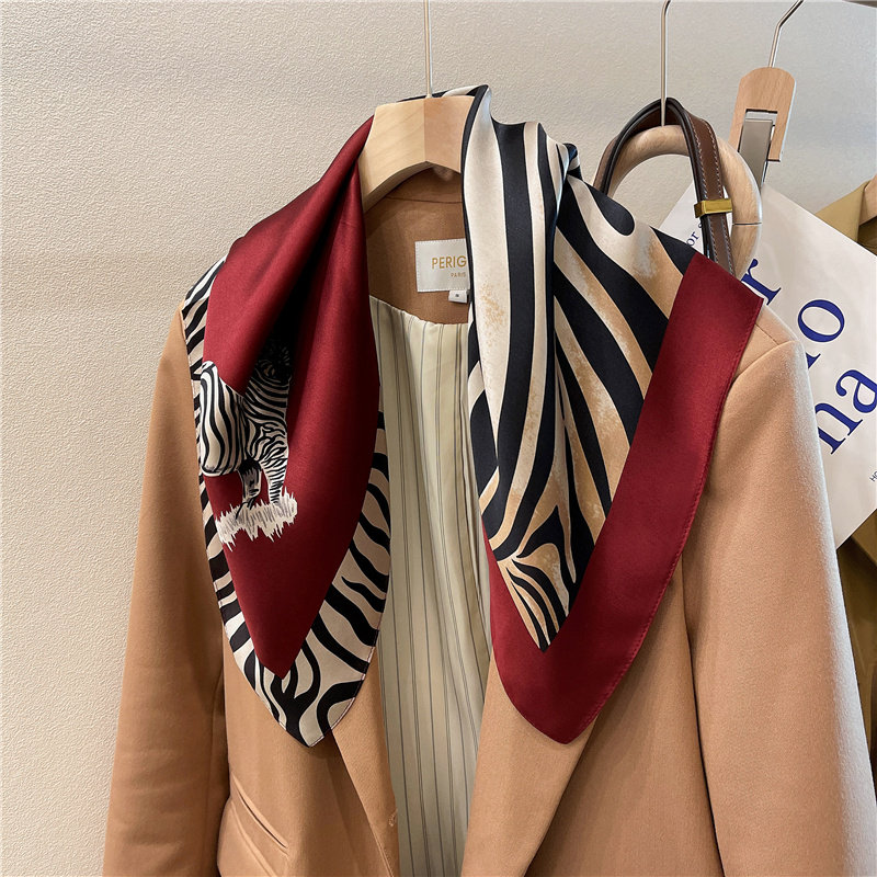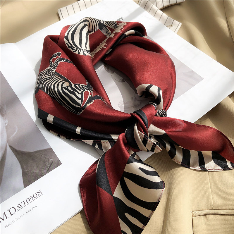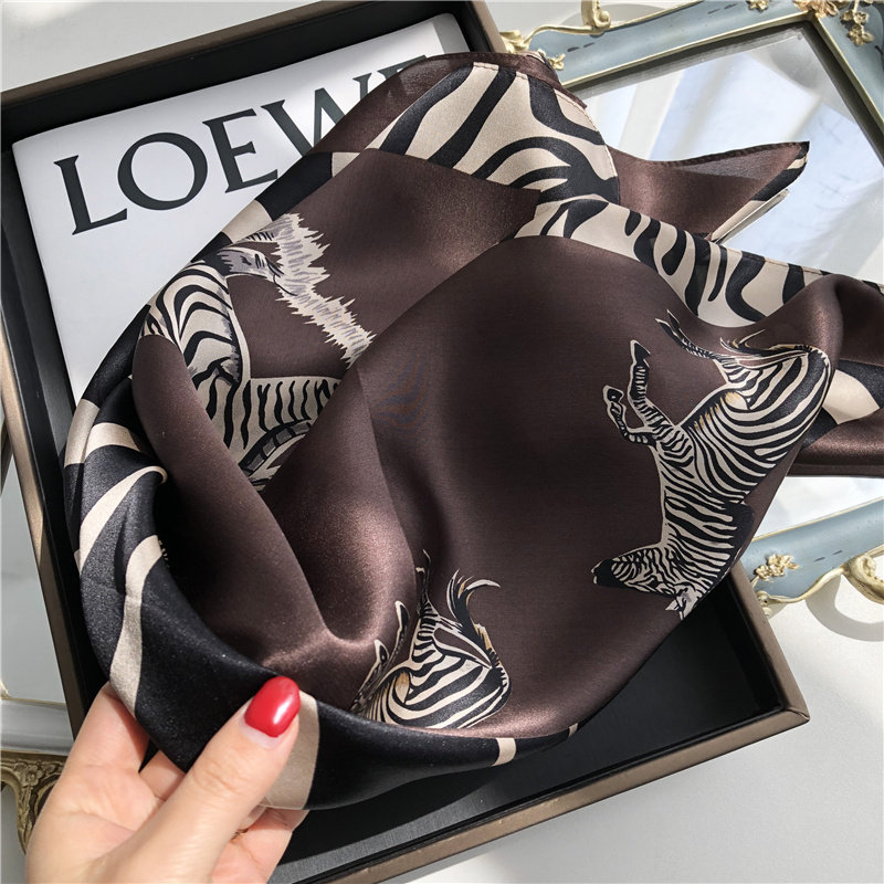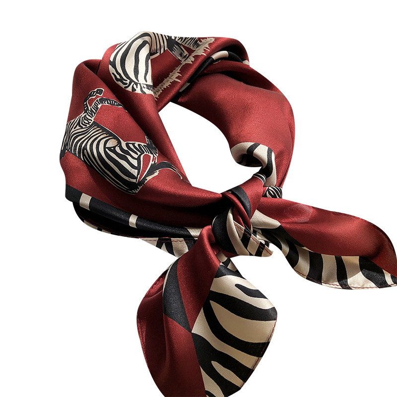 淘宝童趣风!真丝围巾女春夏季斑马纹70cm中方巾装饰桑蚕丝丝巾披肩