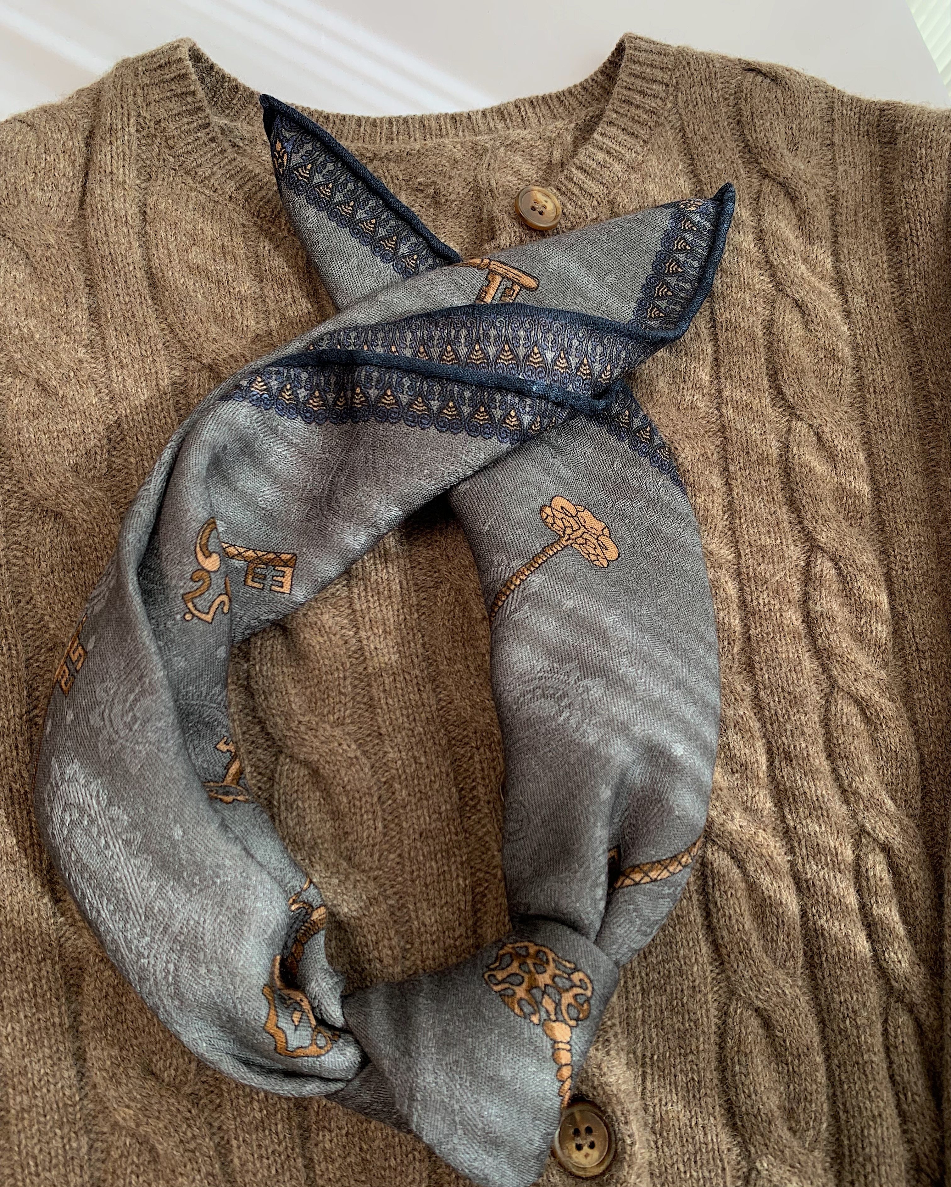 淘宝金钥匙 质感满满佩斯利提花丝羊毛围巾 时髦灰百搭丝巾女63CM方巾