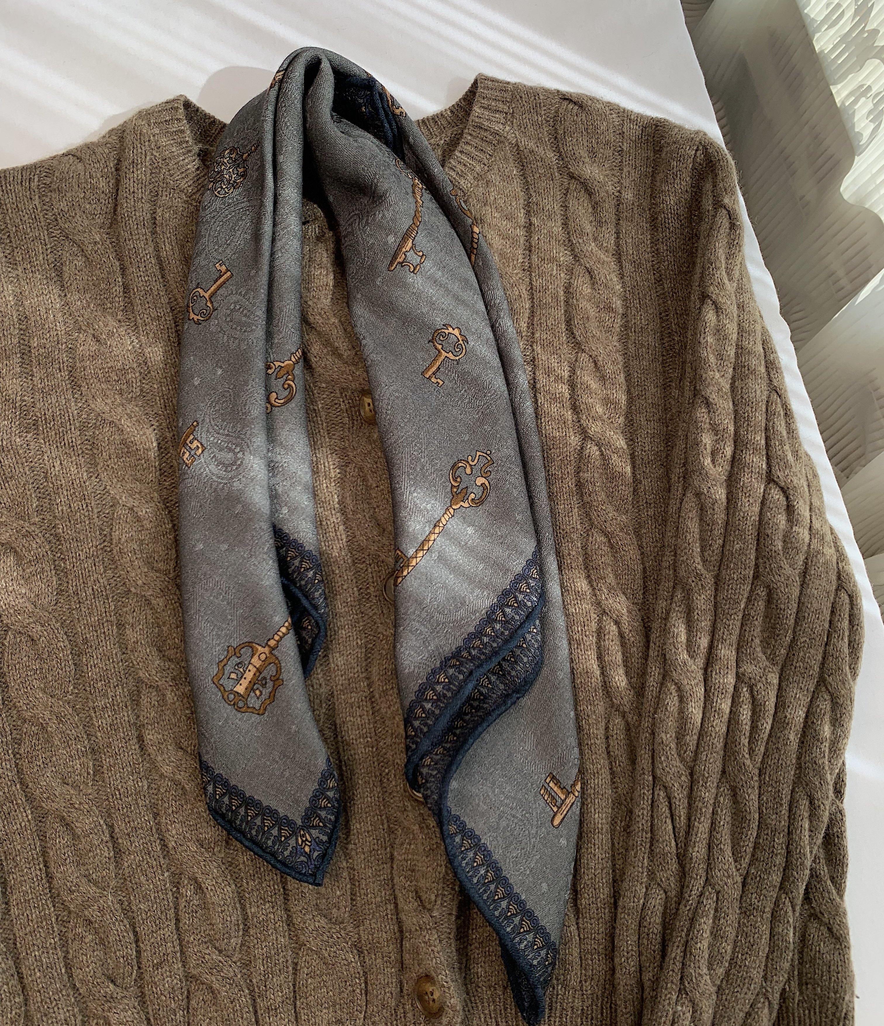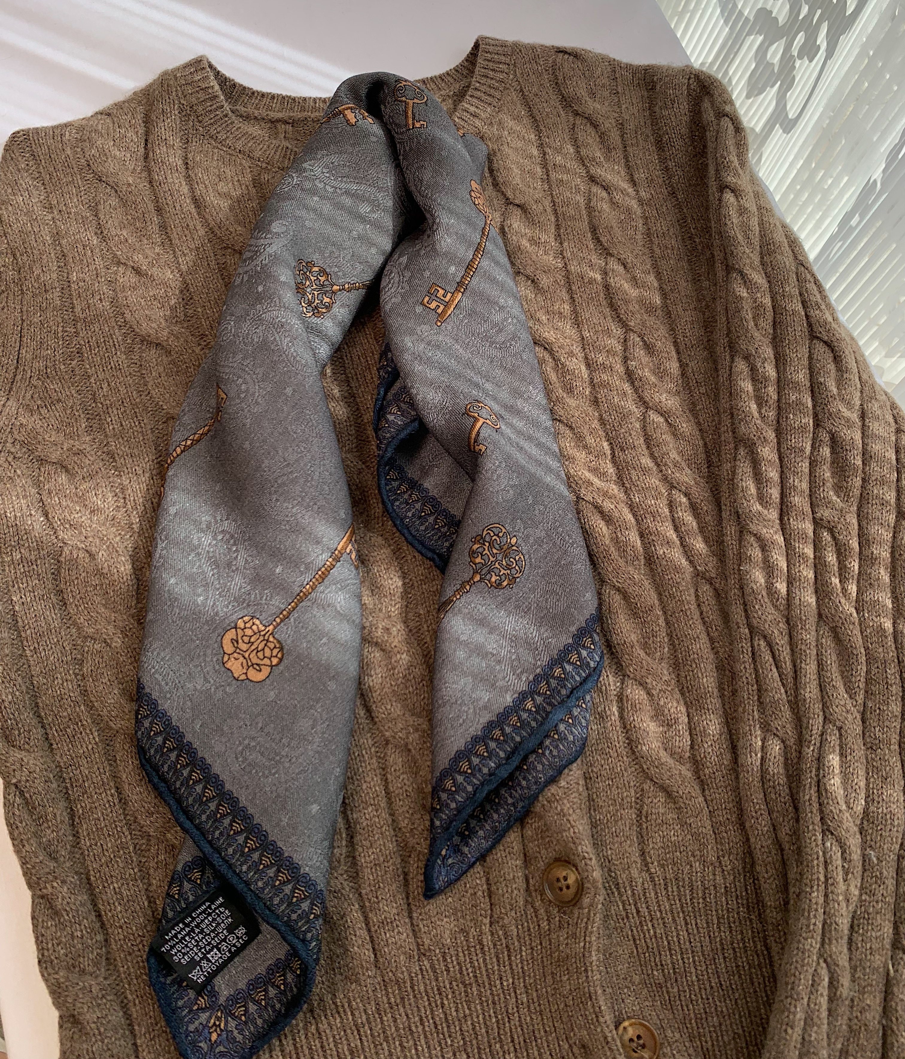 这款金钥匙佩斯利提花丝羊毛围巾,以高级灰为主色调,融合经典佩斯利花纹,质感细腻,光泽柔和,尽显优雅格调。精选丝羊毛混纺材质,轻盈保暖,触感顺滑,佩戴舒适不扎肤。63CM方巾设计,大小适中,可多种方式围系,轻松搭配大衣、风衣或针织衫,提升整体造型层次感。无论是通勤、约会还是休闲出行,都能展现低调奢华的时尚品味。百搭属性极强,适配各种风格服饰,是女性衣橱中不可或缺的精致配饰,尽显知性魅力与高级质感。