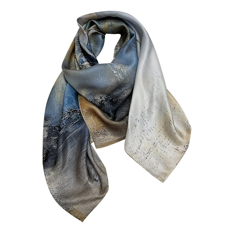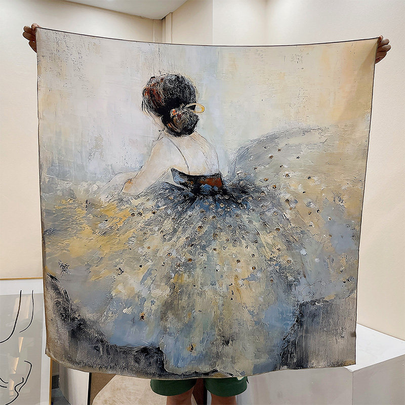 淘宝油画芭蕾!14姆米真丝素绉缎卷边桑蚕丝丝巾大方巾防晒披肩两用