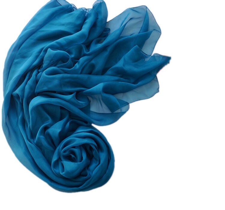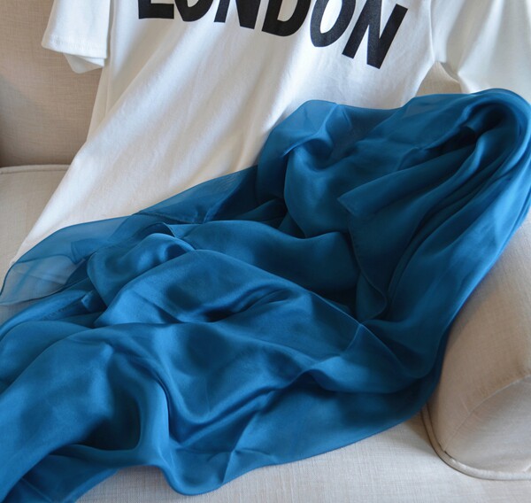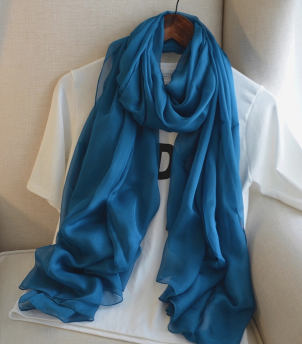 淘宝艾上图原创文艺气质孔雀蓝桑蚕丝纯色真丝丝巾遮阳薄款围巾女披肩
