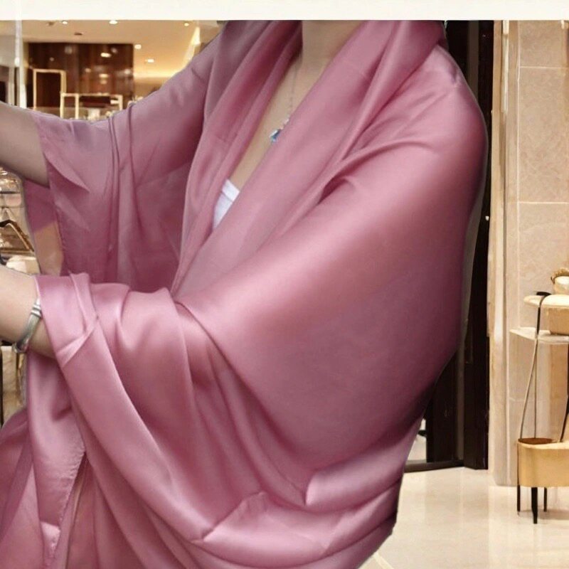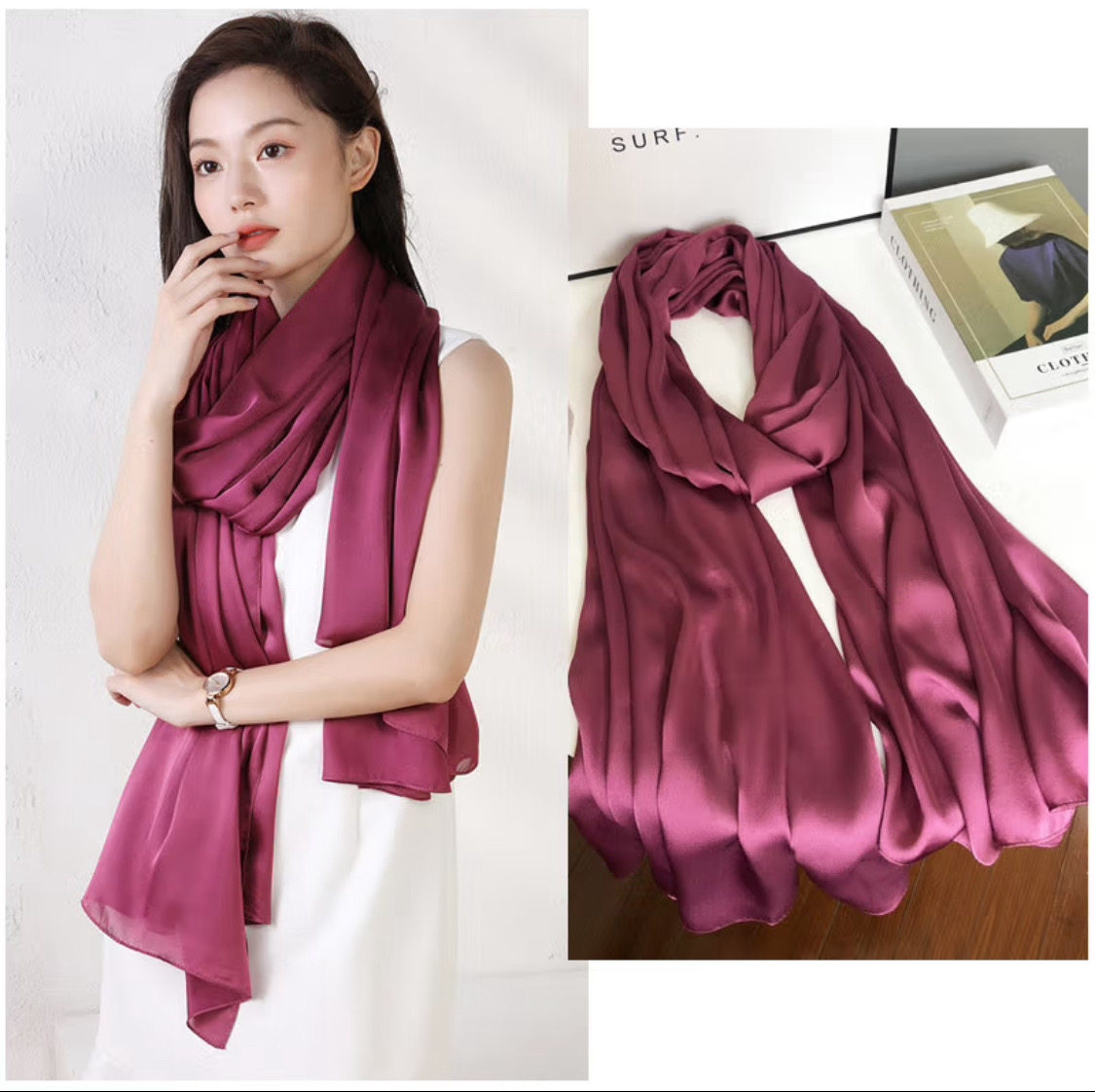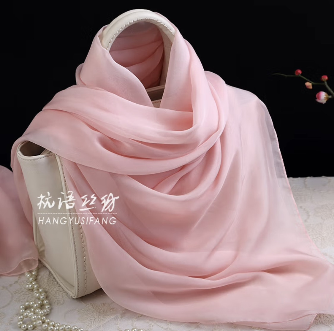 淘宝浅裸色纯色桑蚕丝长款真丝丝巾披肩女高档春秋夏季皱巾丝绸围巾高