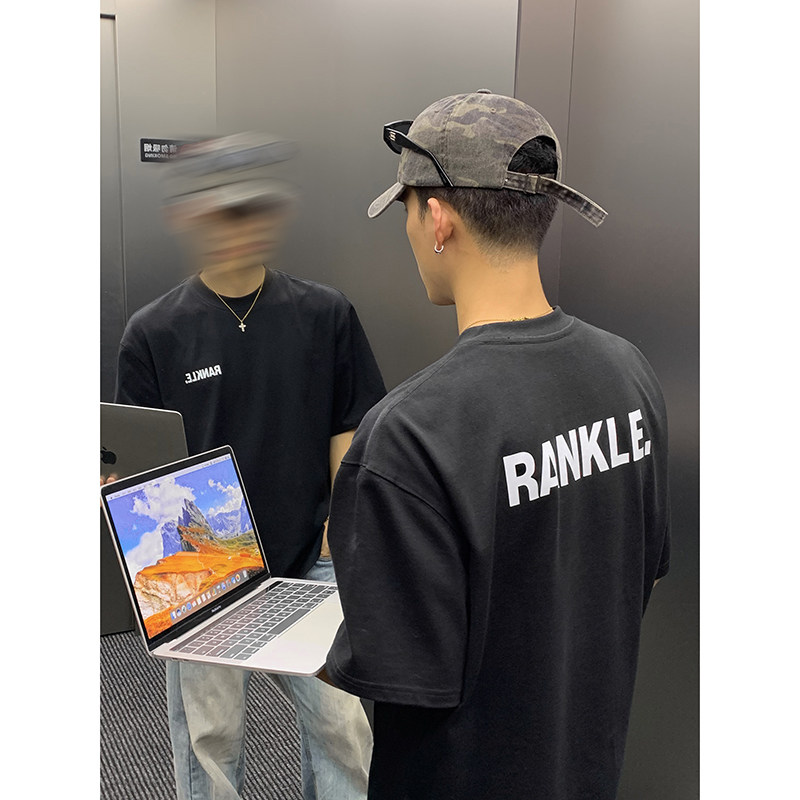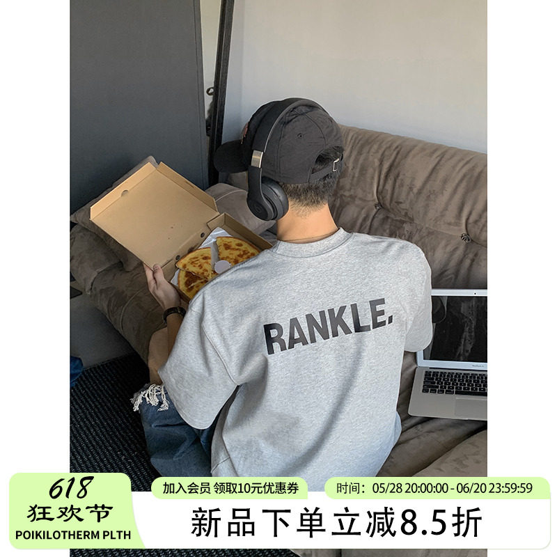 淘宝PLTH*美式重磅纯棉圆领T恤男小领口后背大字母原创印花宽松半袖潮