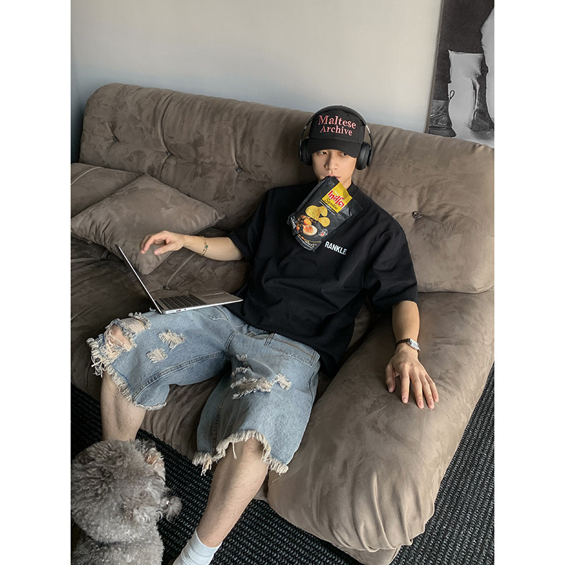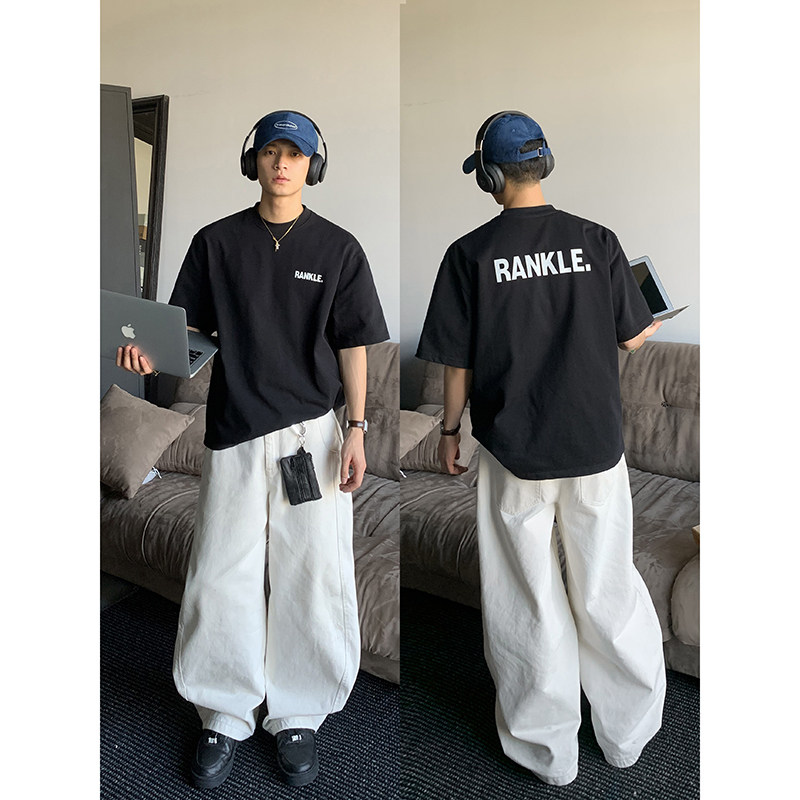 淘外贸欧美潮流时尚男生短袖T恤夏季新款圆领套头宽松潮牌上衣
