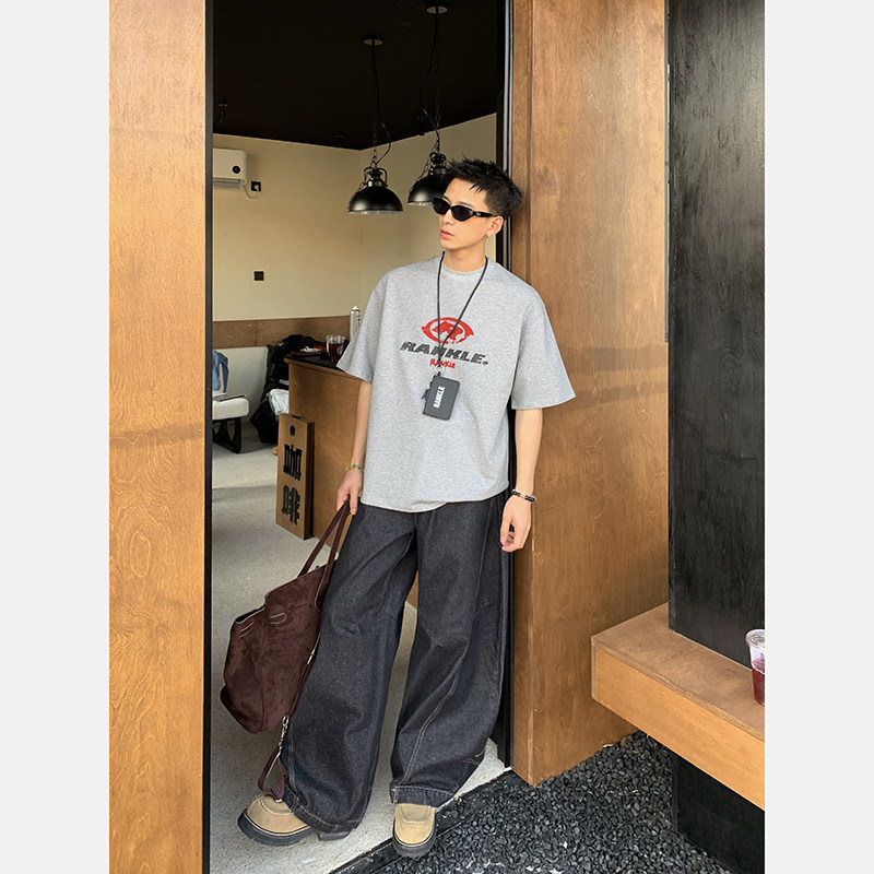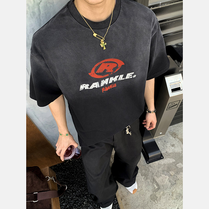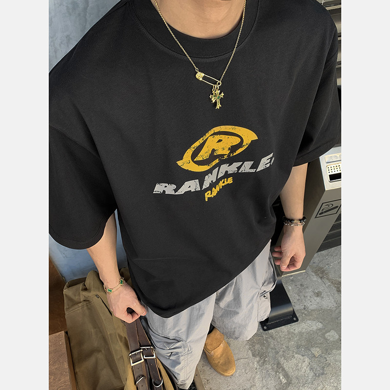 淘外贸欧美潮流时尚男生短袖T恤夏季新款圆领套头宽松潮牌上衣