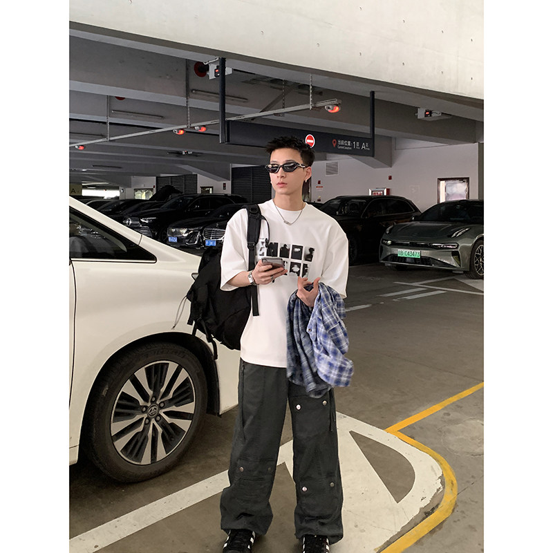 外贸欧美潮流时尚男生短袖T恤夏季新款圆领套头宽松潮牌上衣
