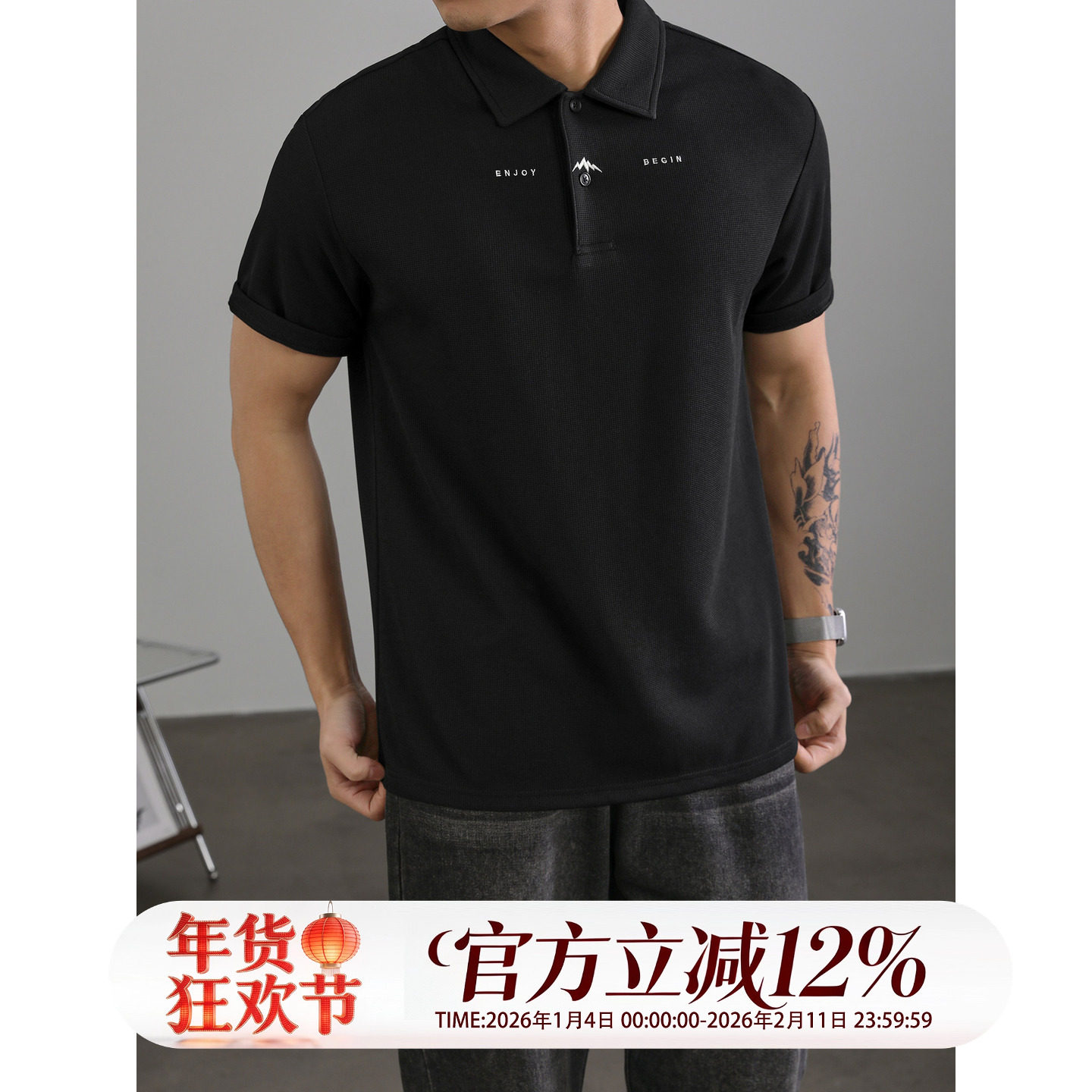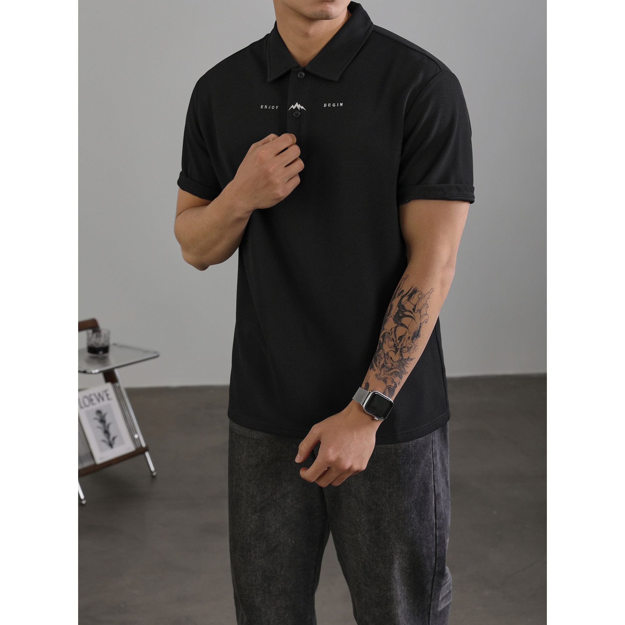 淘宝LUUD 简约Polo衫男士设计感短袖T恤微阔休闲百搭翻领华夫格上衣
