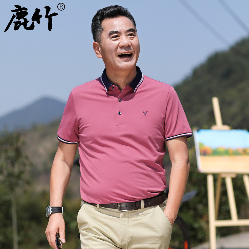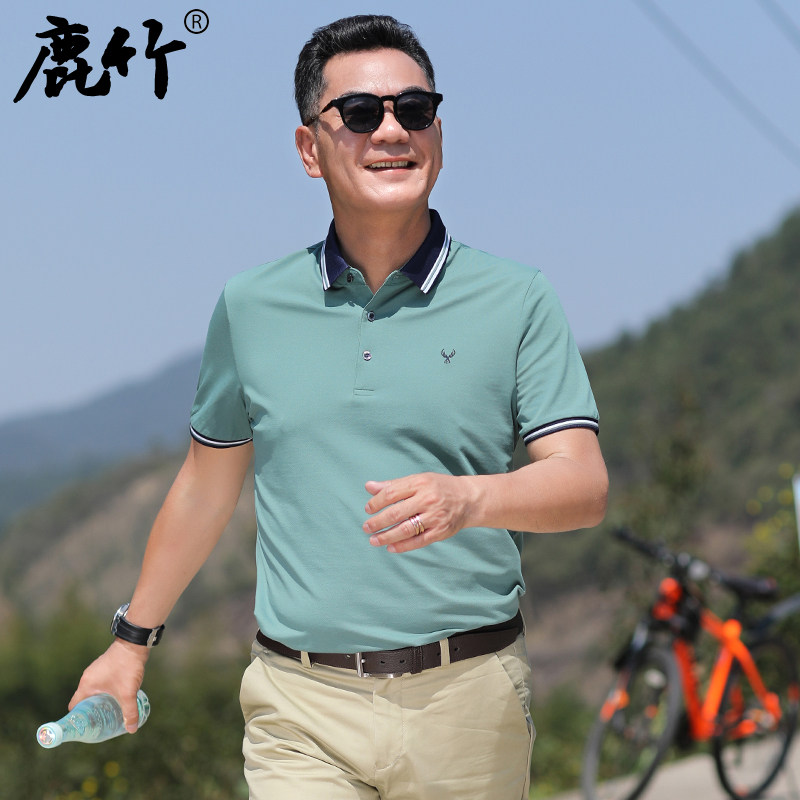 天猫中年爸爸夏装短袖t恤男士冰丝棉休闲Polo衫中老年男装夏季上衣服