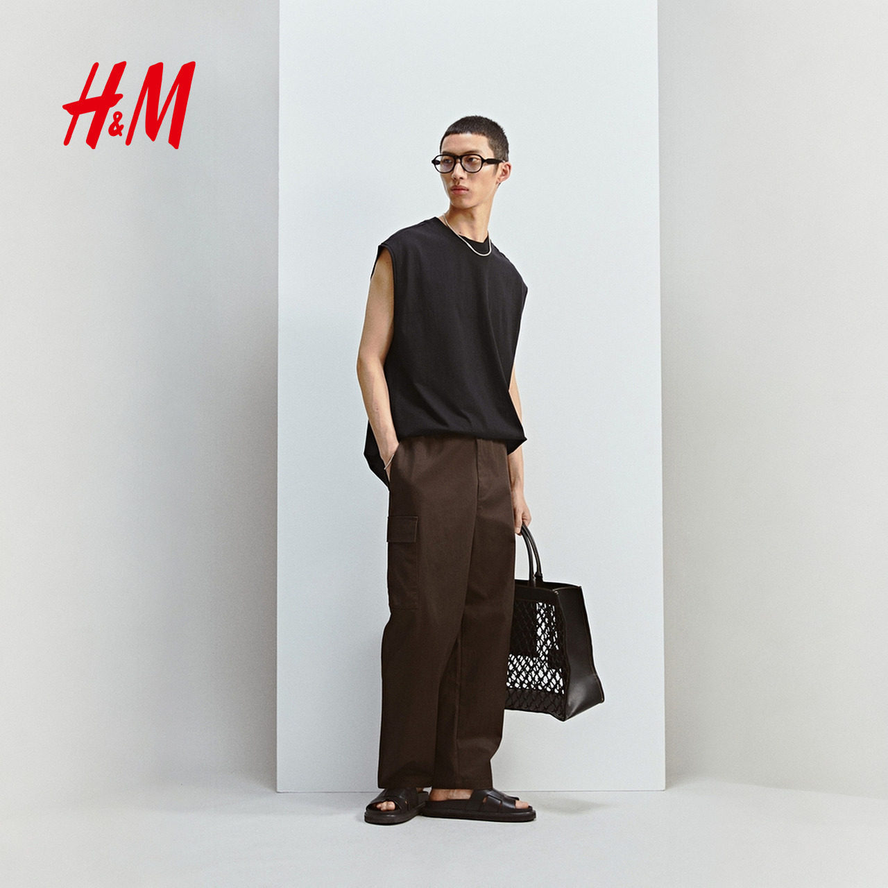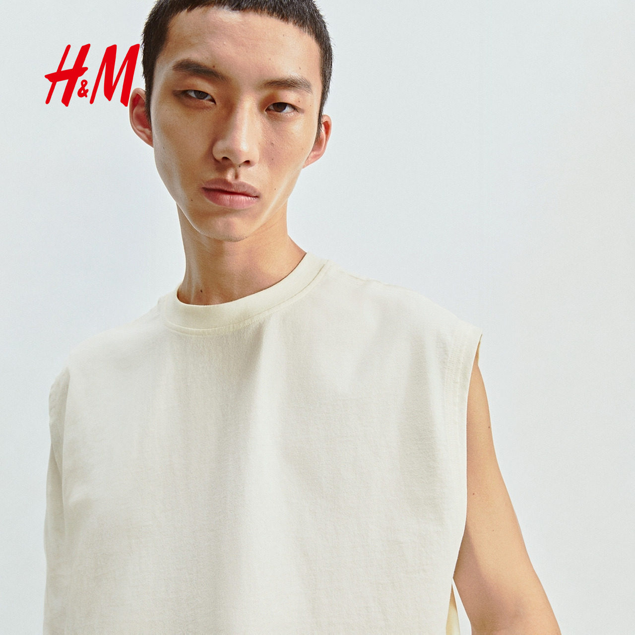 天猫HM男装背心春季宽松美式重磅棉质圆领运动无袖T恤1288285