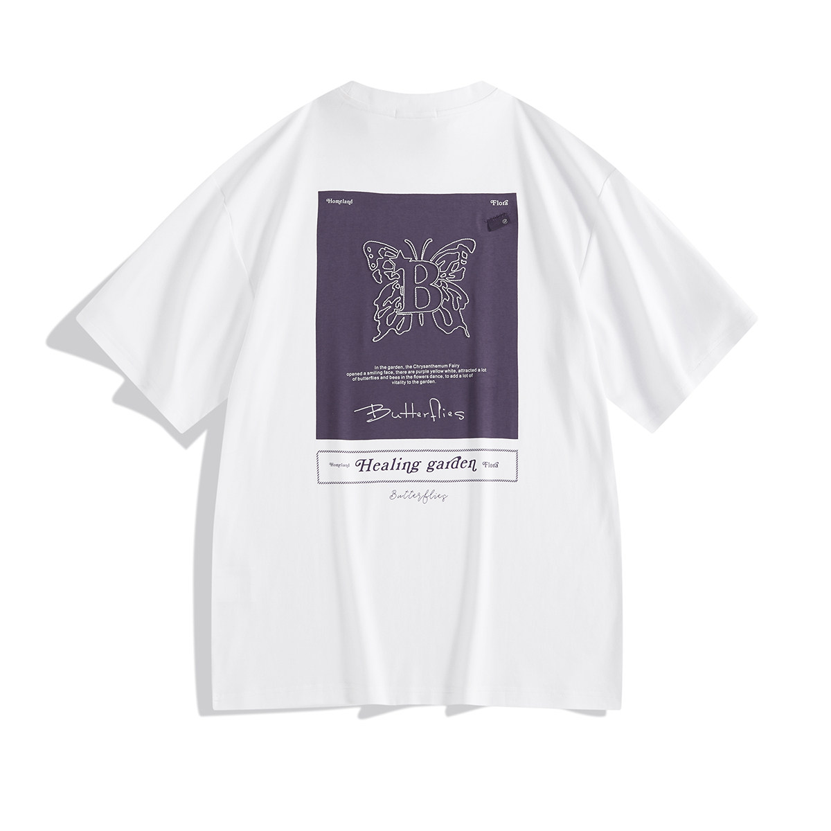 天猫太平鸟男装 潮流背后撞色刺绣夏季短袖T恤B1CNE12