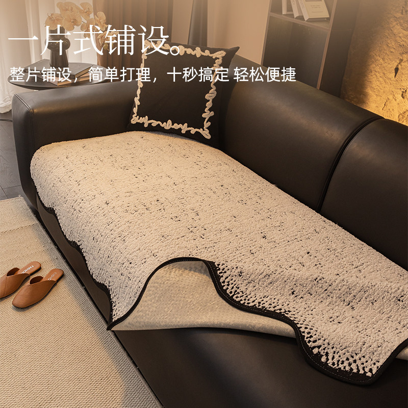 天高级感异形皮沙发垫冬季加厚直排防滑坐垫2026新款毛绒不规则盖布