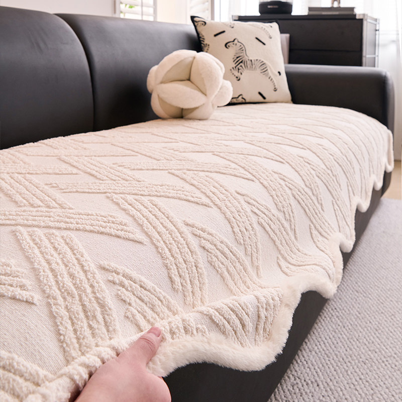 天猫2026新款奶油风秋冬毛绒沙发垫高级感直排防滑皮沙发坐垫盖布套罩