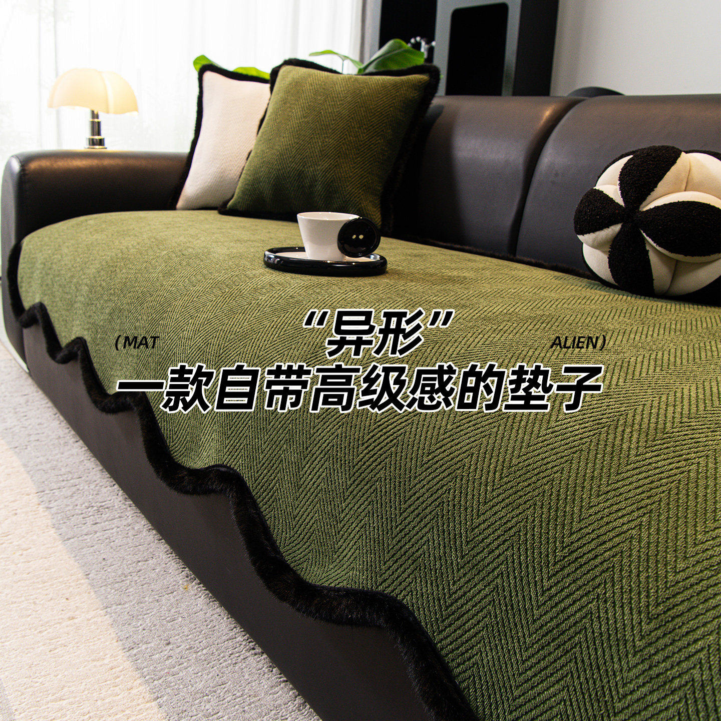 天高级感异形皮沙发垫冬季加厚直排防滑坐垫2026新款毛绒不规则盖布