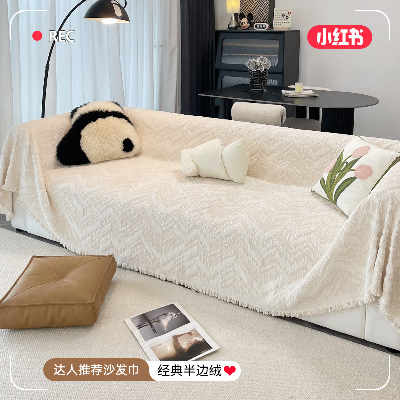 天猫半边绒奶油风沙发盖布2026新款沙发垫秋冬款盖毯沙发巾全包套罩子