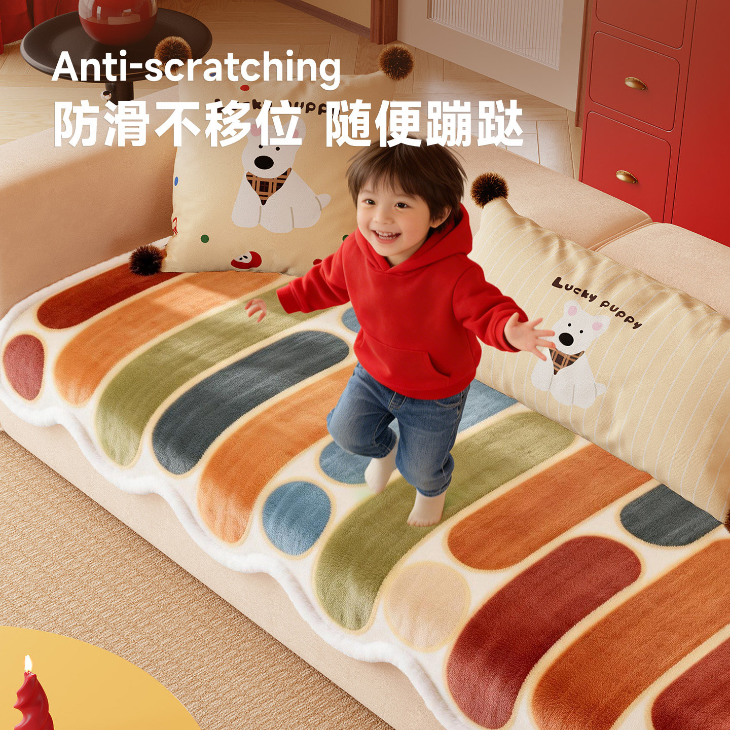 2026年新款多巴胺毛绒加厚沙发垫,专为直排皮沙发设计,融合时尚与舒适。采用高弹海绵填充,外层覆盖柔软亲肤的毛绒面料,保暖透气,冬季使用尤为舒适。创新防滑底面设计,有效固定垫体,避免移位,搭配全包式盖布巾,完美贴合沙发轮廓,保护皮质表面免受磨损。亮丽多巴胺色系点亮家居氛围,提升空间活力。易拆洗设计,清洁便捷,耐用不易变形。无论是日常休憩还是待客使用,都能带来极致坐感体验,是现代家居的理想之选。