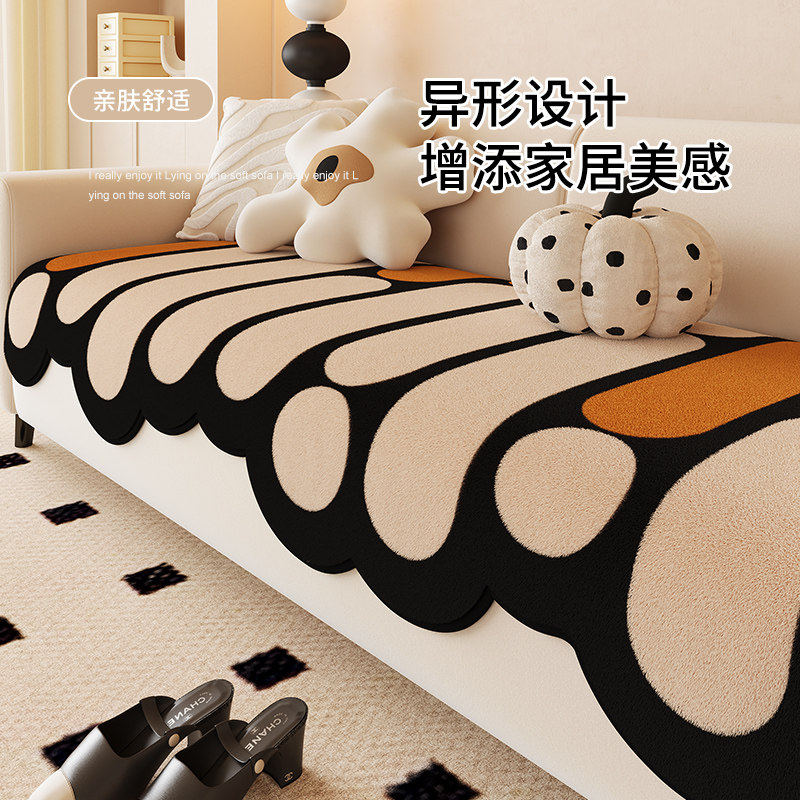 防猫抓卡通毛绒沙发垫2026新款冬加厚耐脏异形盖布巾防滑客厅坐垫