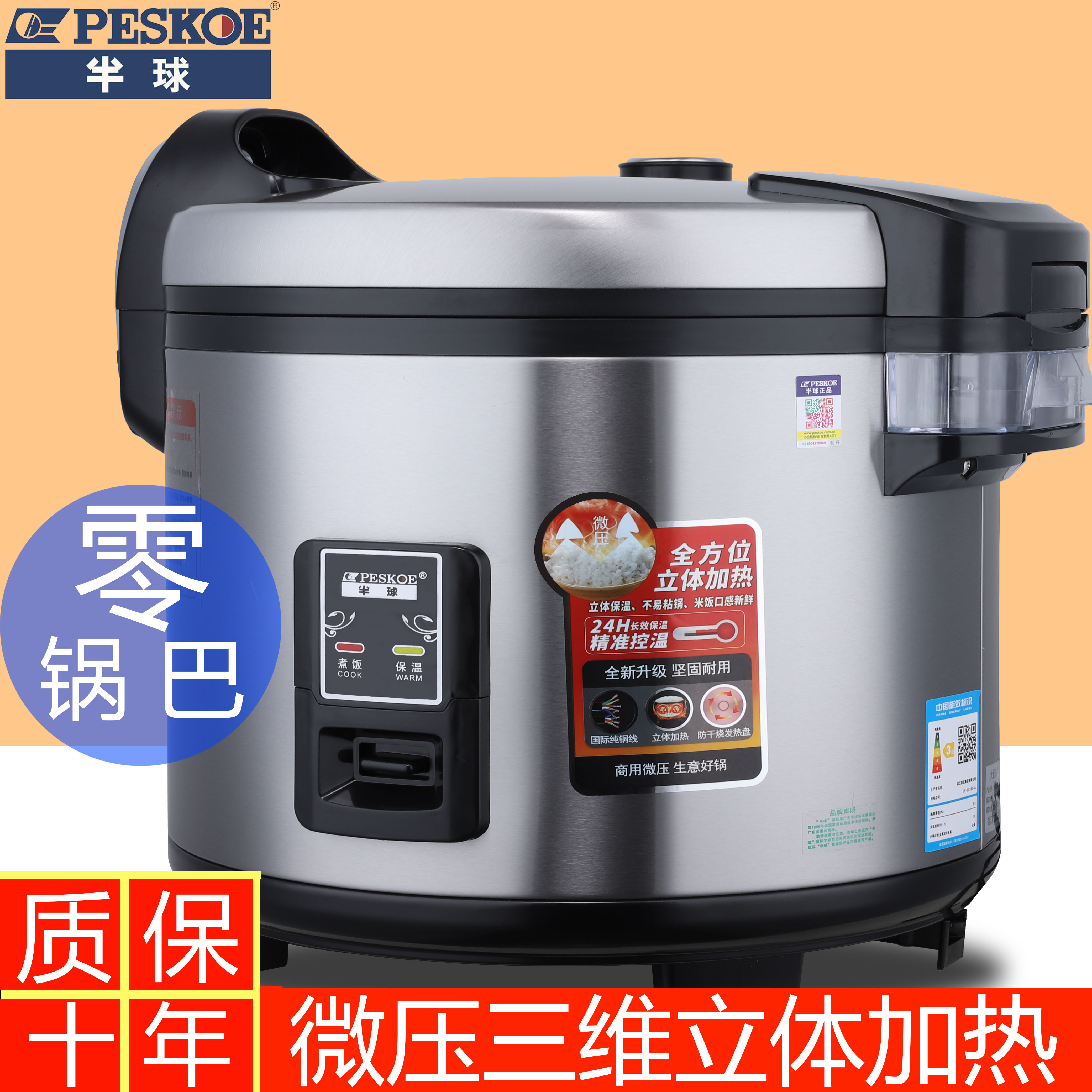 半球商用大容量电饭锅专为10-20-30人规模的食堂、饭店等餐饮场所设计,具备微压烹饪功能,提升米饭口感与营养释放。采用智能控制系统,一键操作,自动完成煮饭、保温流程,省时省力。内胆使用优质不粘涂层,受热均匀,米饭松软香甜,且清洗便捷。大容量设计满足多人用餐需求,高效节能,运行稳定。加厚锅体结构耐用抗造,适应高强度使用环境。具备防溢、过热保护等安全功能,保障使用安全。半球品牌品质保障,是商用厨房的理想选择,助力餐饮高效运营。
