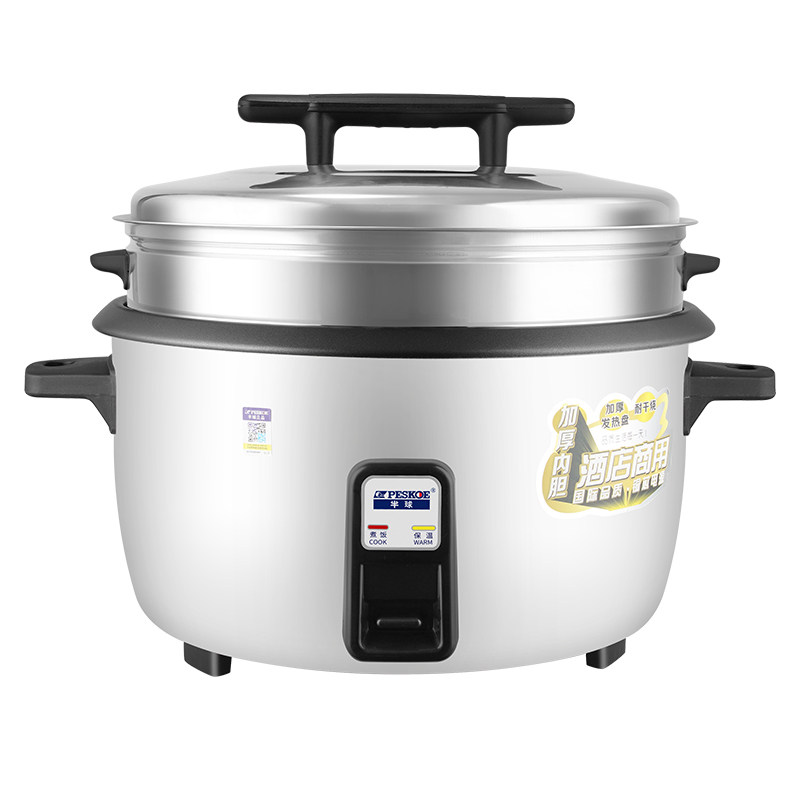 半球电饭锅商用大容量,专为10L-30人用餐场景设计,适用于学校食堂、酒店后厨、工地餐厅等场所。采用优质加厚内胆,受热均匀,米饭香甜可口,支持煮饭、煲汤、蒸煮多功能一体。配备不锈钢蒸笼,可同时蒸菜、蒸点心,提升烹饪效率。大功率加热,快速升温,节能耐用,操作简单,安全可靠。整机结构坚固,防干烧保护,适合长时间高强度使用。正品保障,品质可靠,是商用厨房的理想选择,满足大批量用餐需求,兼顾效率与口感,助力餐饮运营高效省心。