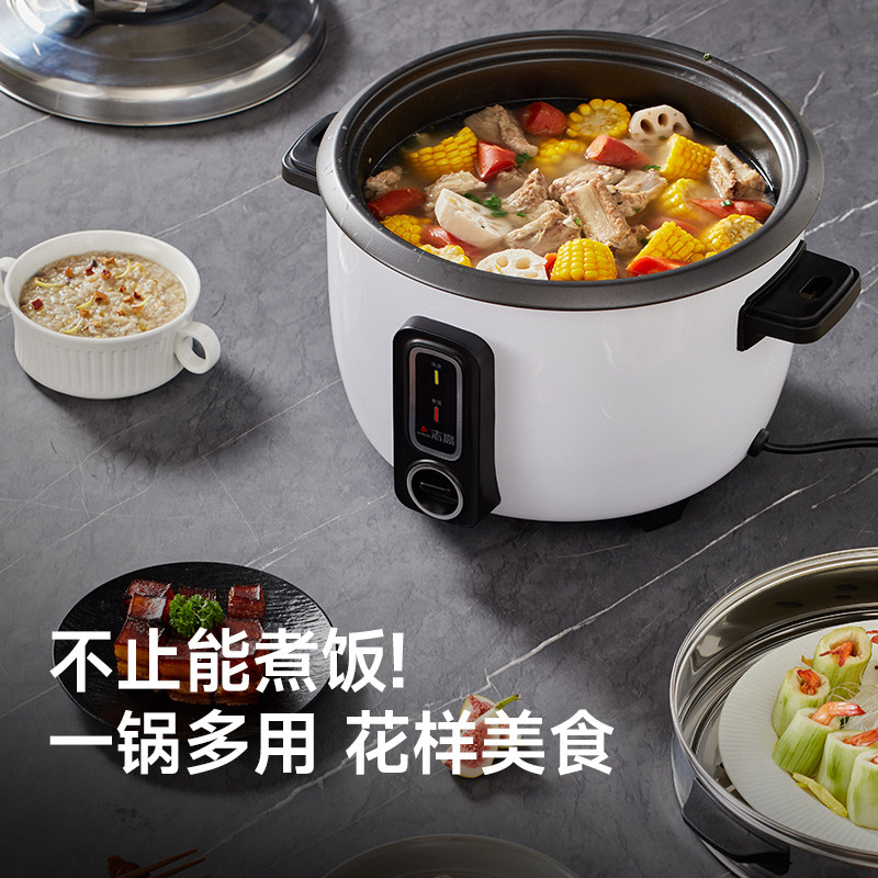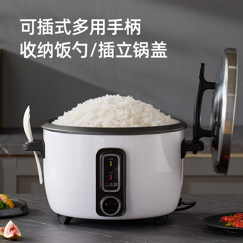 志高商用大容量电饭锅,专为10-30人用餐场景设计,适用于学校食堂、企业餐厅、酒店后厨等场所。配备8L超大内胆,一次可煮制大量米饭,满足高峰用餐需求。采用传统老式加热技术,受热均匀,米饭口感香甜松软,锁住营养。加厚不锈钢内胆耐用易清洁,防干烧保护与安全温控系统确保使用安全。操作简单,一键启动,高效节能,稳定可靠。志高品牌品质保障,是商用厨房的理想选择,兼顾大容量、高效率与持久耐用,助力餐饮运营更省心省力。