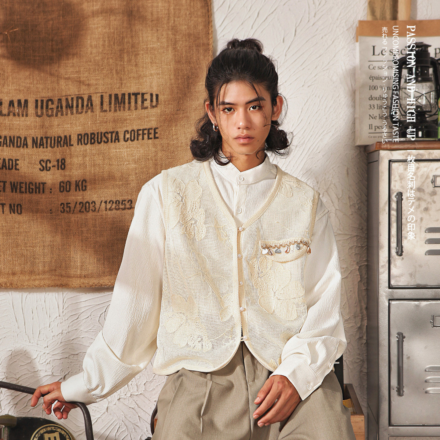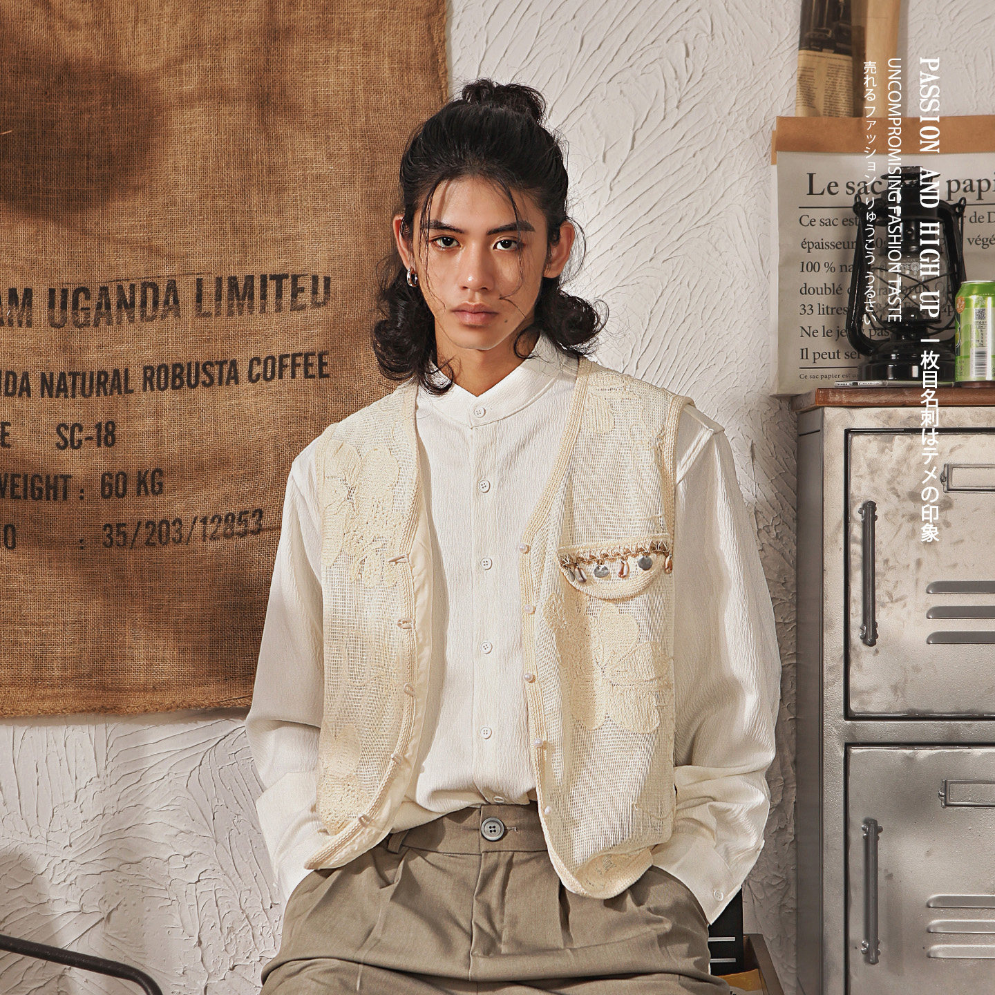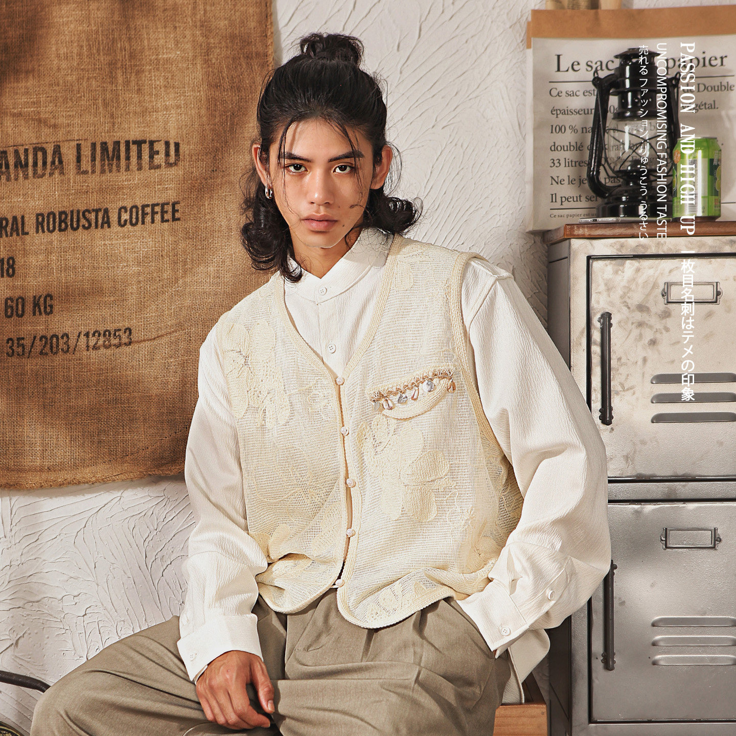 淘宝日系复古蕾丝贝壳流苏小香风外穿V领马甲男春秋季高级感宽松外套
