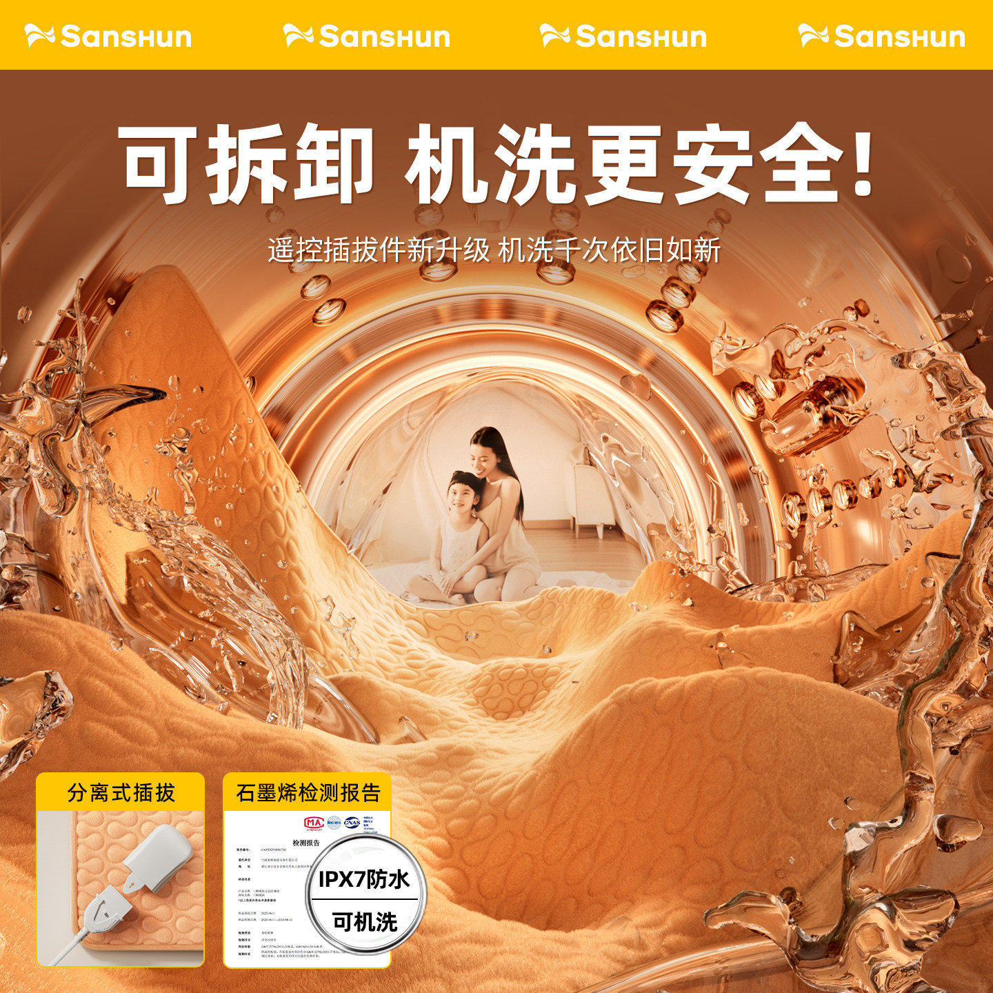 天猫可水洗石墨烯电热毯2025新款单双人电褥子双控正品官方旗舰店家用
