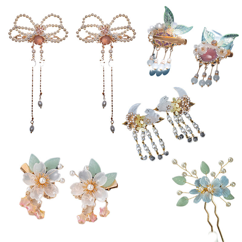 汉服发饰是传统中式美学的精致体现,其中女童汉服发饰尤为灵动可爱。对夹、发簪、边夹等款式多样,常采用蜻蜓、花卉、蝴蝶等自然元素为设计灵感,搭配细腻流苏与珠翠点缀,行走间摇曳生姿,尽显古典韵味。步摇作为经典头饰,垂珠轻摆,增添优雅气质。材质多选用合金、亚克力、仿珍珠等,轻盈耐用,色彩柔和,与汉服交相辉映。无论是节庆典礼、古风摄影还是日常穿搭,这些古风头饰都能为女童增添一份温婉灵动的东方之美,传承中华服饰文化的独特魅力。