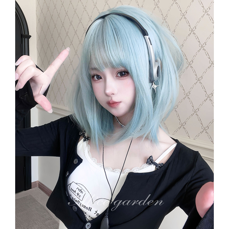 天猫AG假发女短发网红芭蕾风lolita夏日冰感《海歌精灵》直发jk全头套