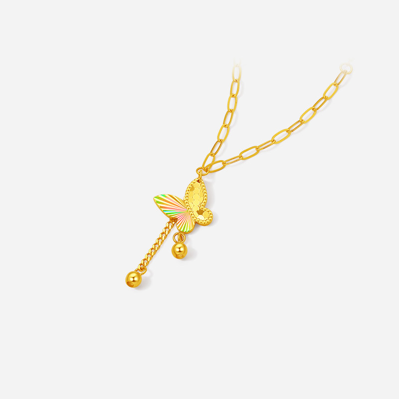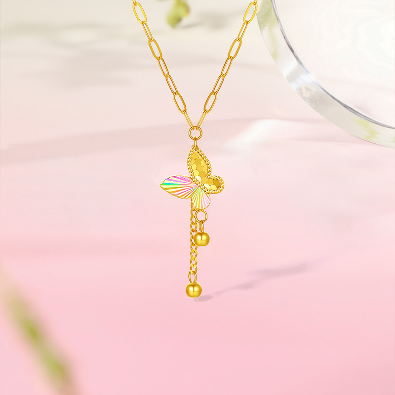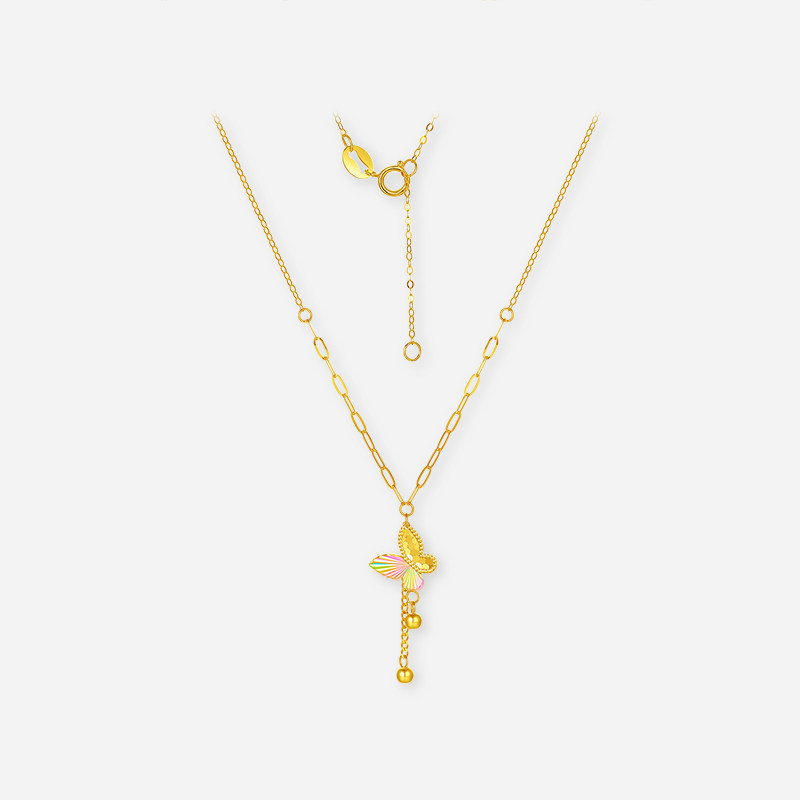 天猫周六福黄18K金项链女蝴蝶结链坠AU750多彩金时尚送女友新年礼物