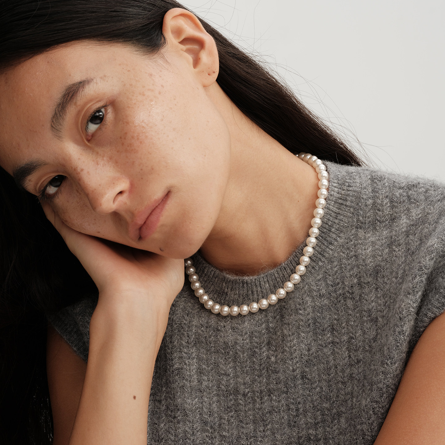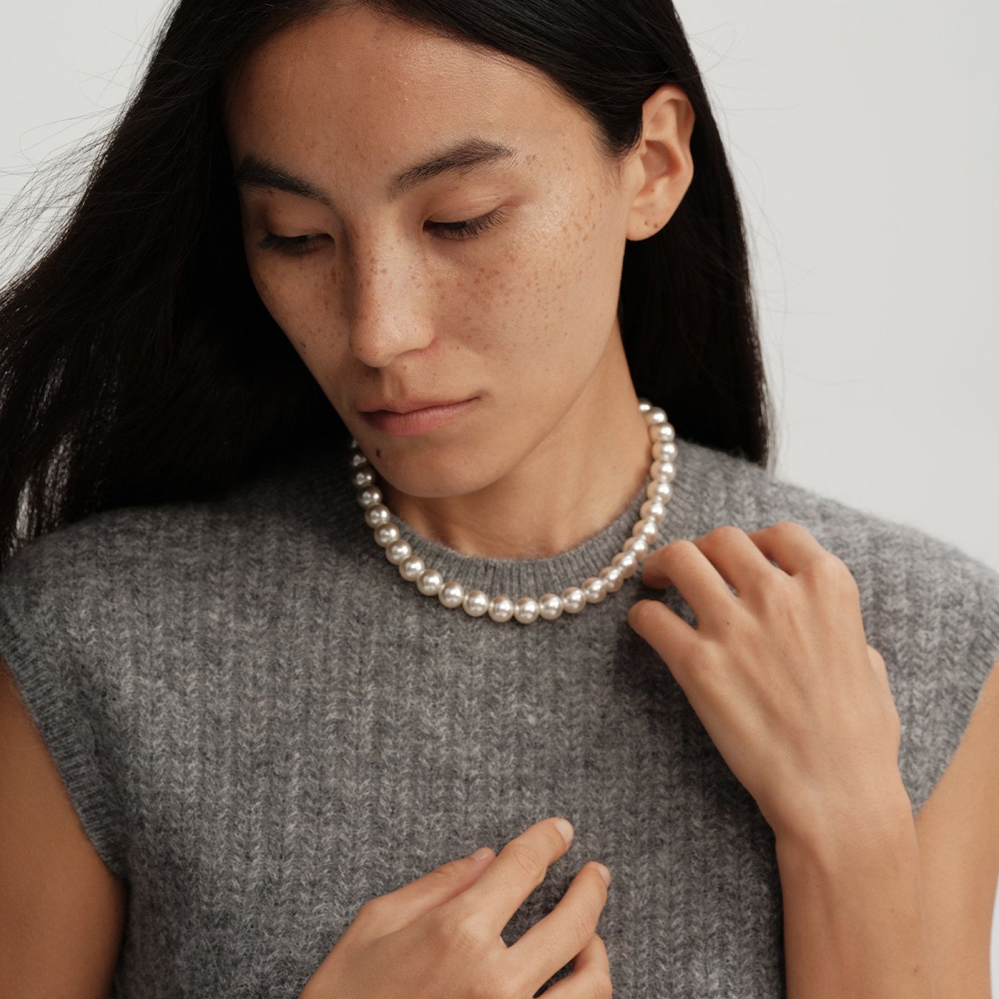 【CnHnOn脂肪商店】推出的正圆强光珍珠项链,以经典简约的设计诠释优雅气质。精选优质淡水珍珠,颗颗正圆饱满,光泽璀璨如月光流转,彰显高级质感。项链采用百搭尺寸设计,适合日常通勤、约会聚会或正式场合,轻松搭配各类服饰。极简链条与珍珠相映成趣,既不过分张扬,又尽显女性温婉与知性。无论是单独佩戴还是叠戴,都能为整体造型增添一抹精致亮点。CnHnOn脂肪商店坚持匠心工艺,致力于将经典与时尚融合,让每一位佩戴者都能展现独特魅力。这款珍珠项链,是优雅生活的理想之选。