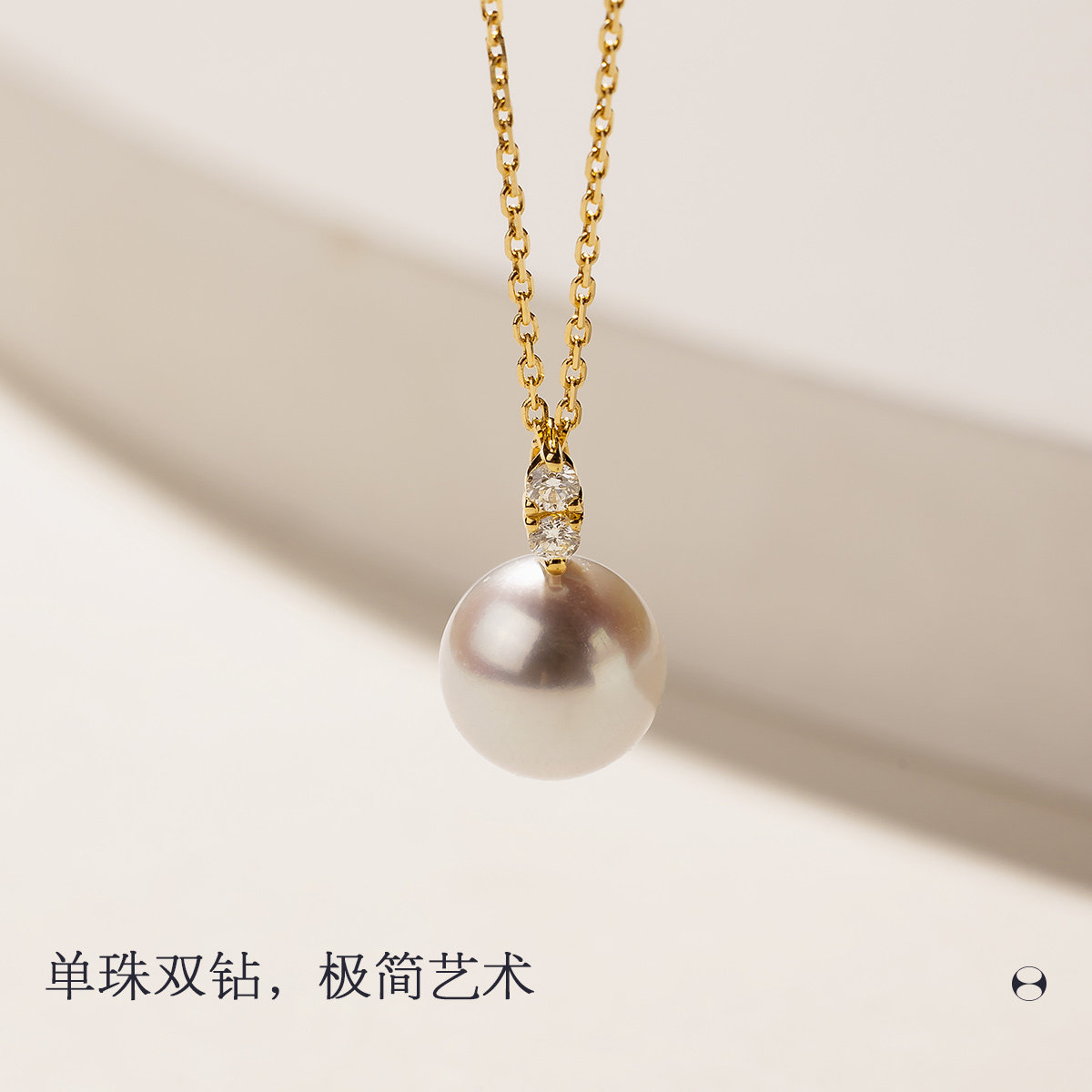 天猫HELAS赫拉原点海水Akoya珍珠项链女吊坠18K金钻石单珠颈链珠宝