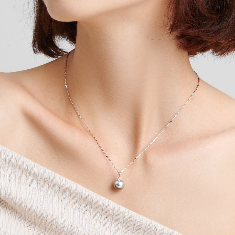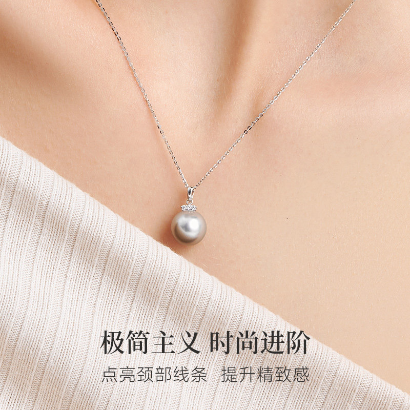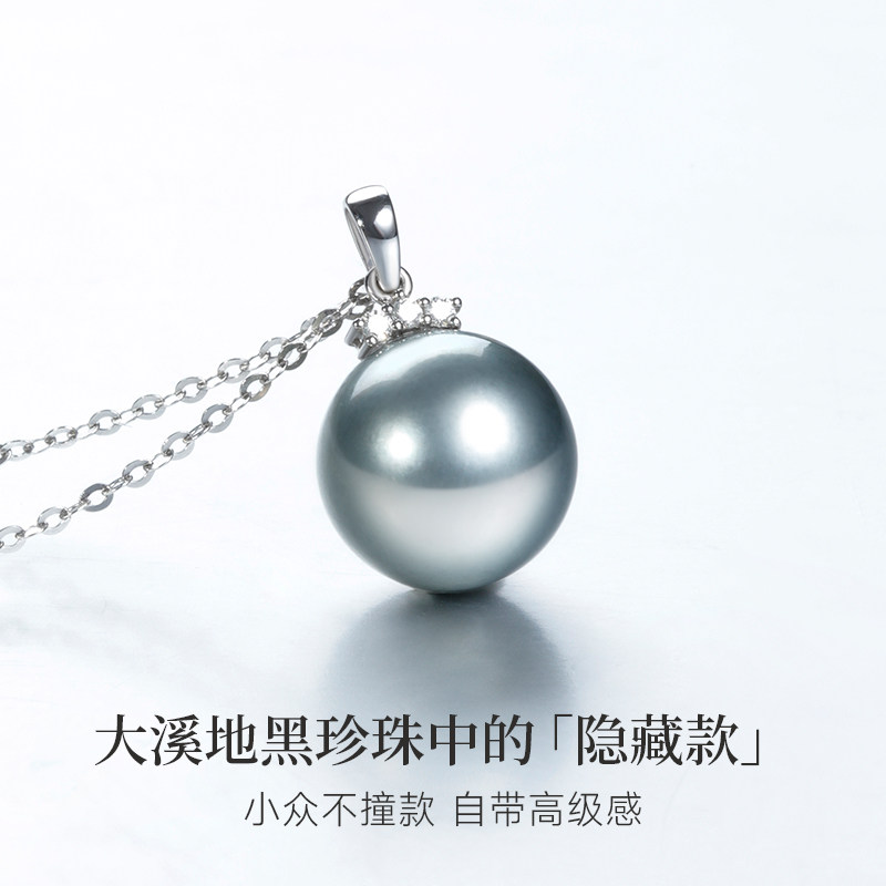 天猫GiO珠宝 大溪地铂金灰海水珍珠项链女18K金钻石吊坠通勤锁骨链