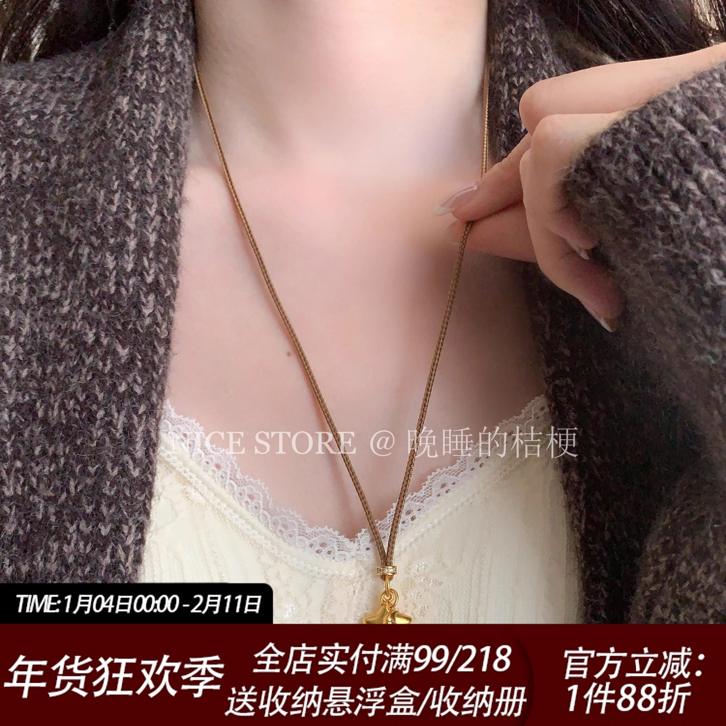 晚睡的桔梗「小星星」新中式沙金星星月亮项链,是一款融合东方美学与现代设计的气质毛衣链。采用细腻沙金工艺,呈现哑光质感,低调中透显高级。星星与月亮元素寓意温柔守护与浪漫遐想,搭配新中式简约线条,既古典又时尚。博主同款设计,轻松提升穿搭质感,无论是搭配毛衣、大衣或日常休闲装,都能为造型增添一抹灵动感。链条长度适中,佩戴舒适,适合多种场合。这款项链不仅是饰品,更是一种生活态度的表达——在静谧夜晚,如星光般闪耀自我,温柔而坚定。适合追求个性与品味的你,点亮日常,散发独特魅力。
