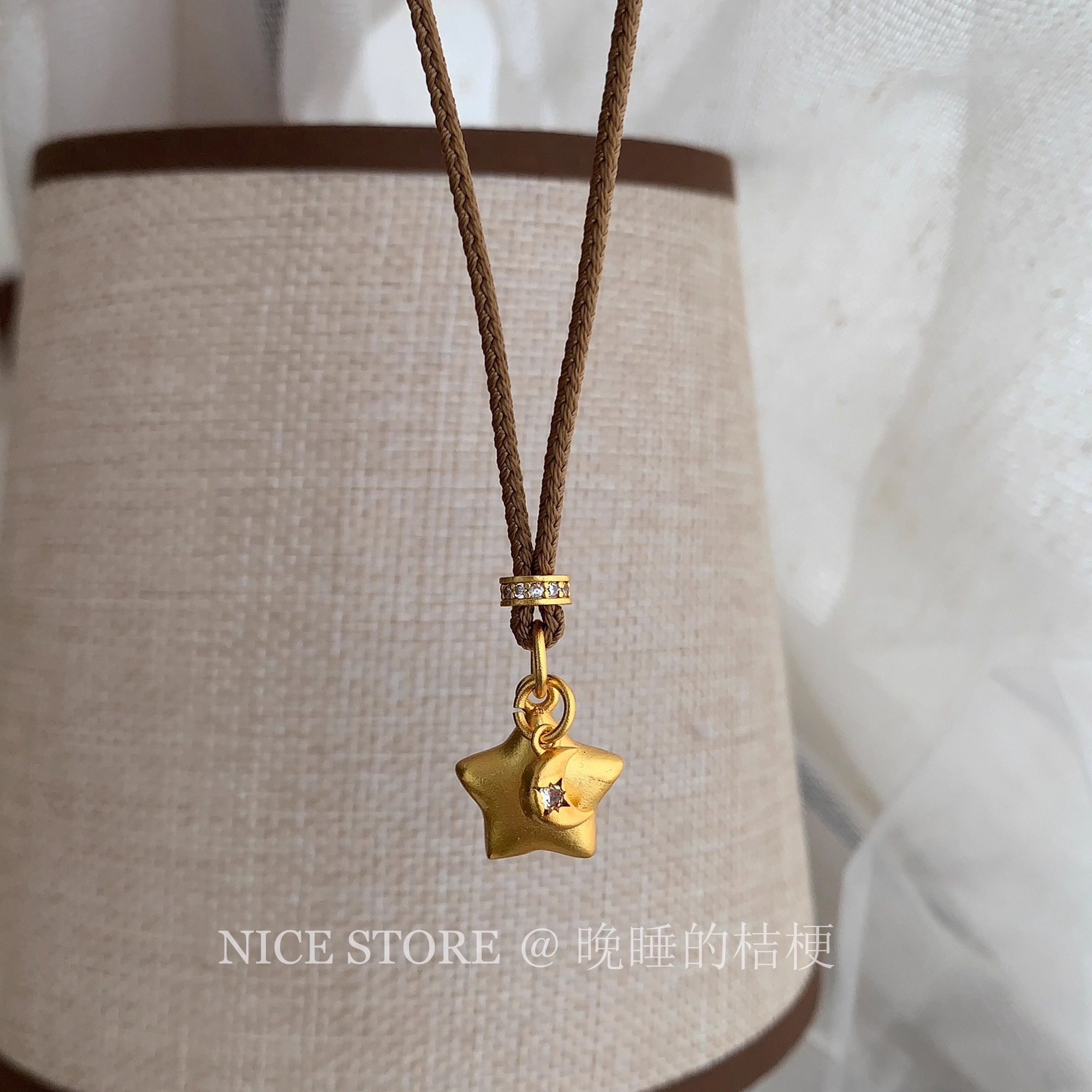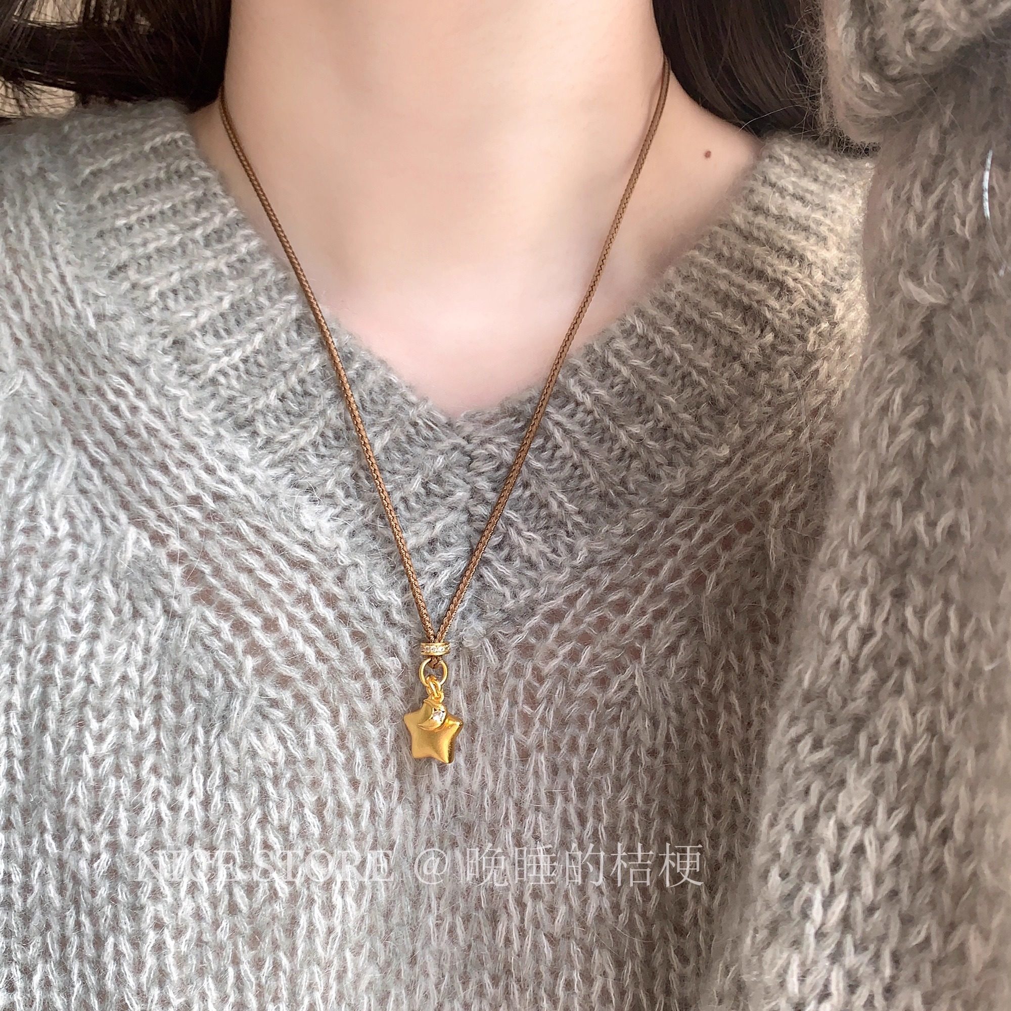 淘宝晚睡的桔梗「小星星」新中式沙金星星月亮项链博主同款气质毛衣链