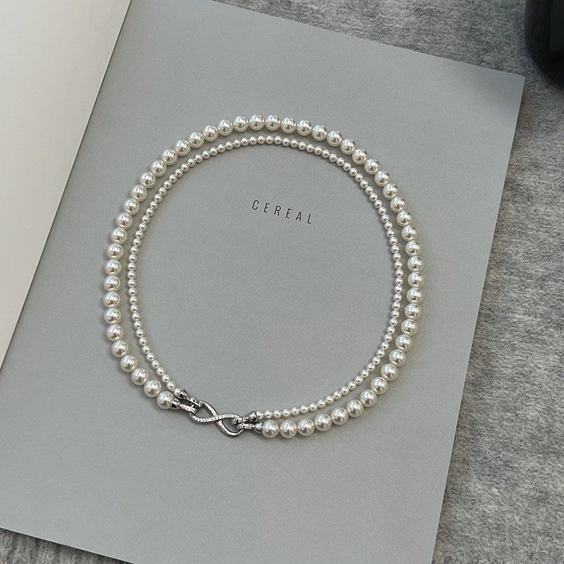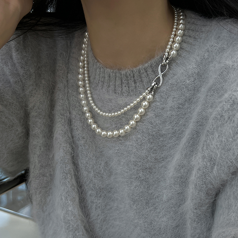 淘宝方糖家 可拆分经典白珍珠8字扣双层项链高档轻奢小众毛衣链饰品