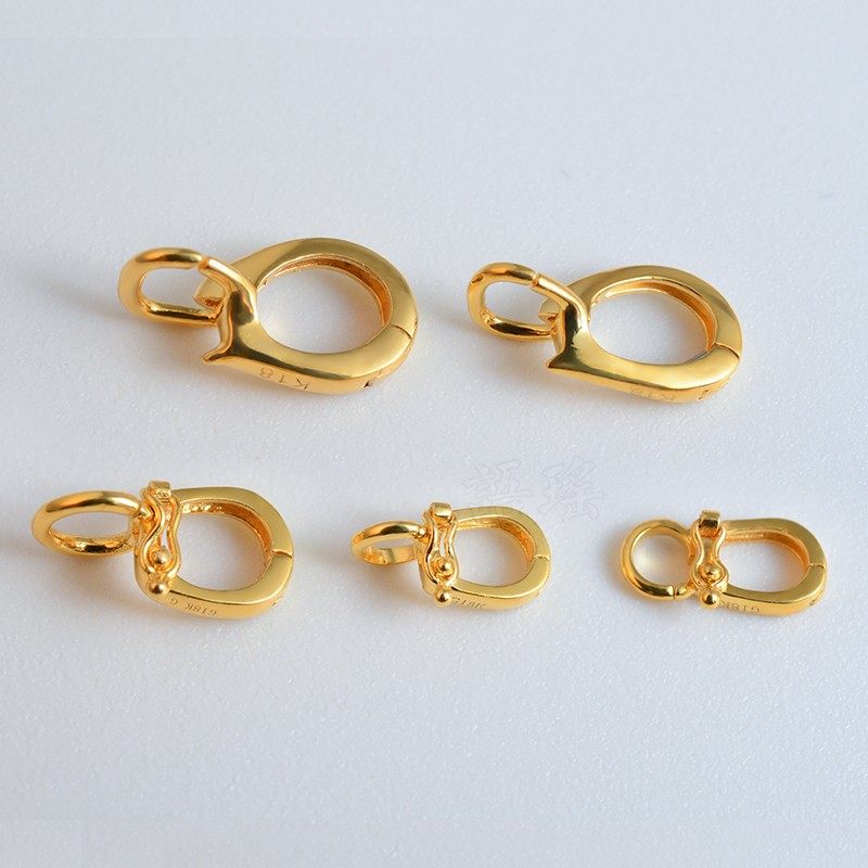 纯18k金弹簧扣头闭口黄金配件珍珠女项链手链diy材料字印牌连接扣