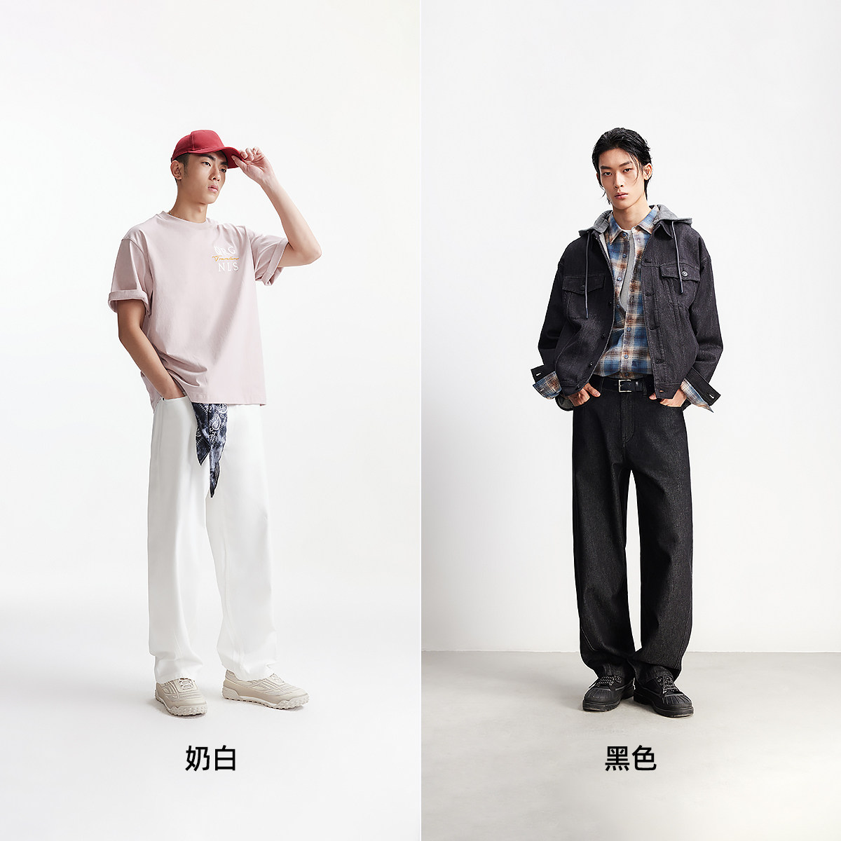 淘Nick Tian 极简纯色直筒牛仔裤男秋季新款韩系简约宽松休闲百搭
