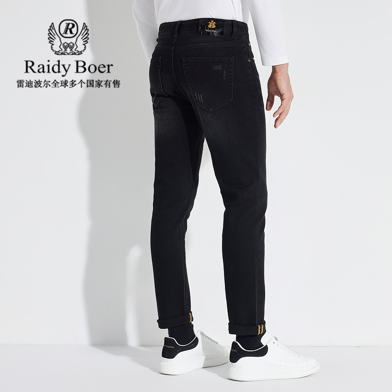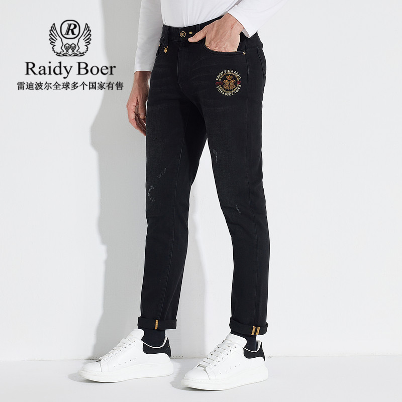 天猫【磨毛加厚】Raidy Boer/雷迪波尔男刺绣字母双头鹰牛仔裤6023-70